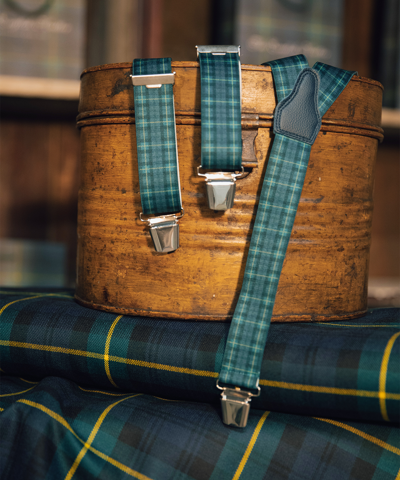 Deze exclusieve bretels uit de 90 Years Edition van The English Hatter zijn vervaardigd van hoogwaardig elastiek en uitgevoerd in het karakteristieke Green Tartan. De clips zorgen voor een perfecte pasvorm en dragen bij aan een klassieke, Britse uitstraling. Een limited edition item, uitsluitend verkrijgbaar in onze webshop.