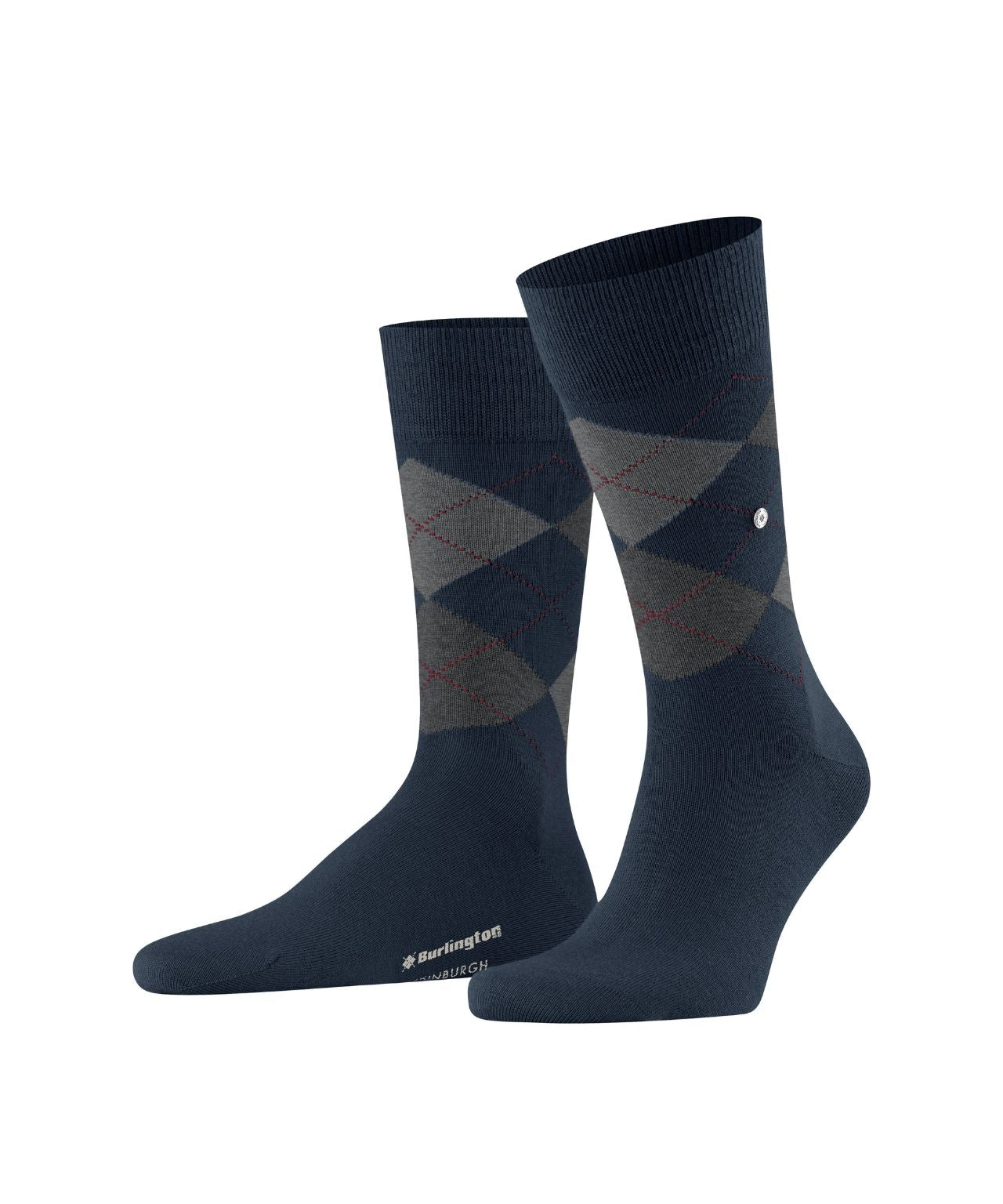 Classic meets comfort – and that at the highest level. The Edinburgh socks are a true partner for the week thanks to their argyle pattern and high-quality new wool. A gentleman knows what is good. Design & Extras: Argyle pattern Burlington clip Burlington logo in the sole Warming, high-quality new wool Features: Gender: Male Pattern: Argyle Transparency: Opaque Material: 71% New Wool, 29% Polyamide Look: Smooth Shaft Length: Calf Wearing comfort: Pleasantly soft Type of board: rib Padding: None Sole: Normal Style: Classic Sustainability: Yes