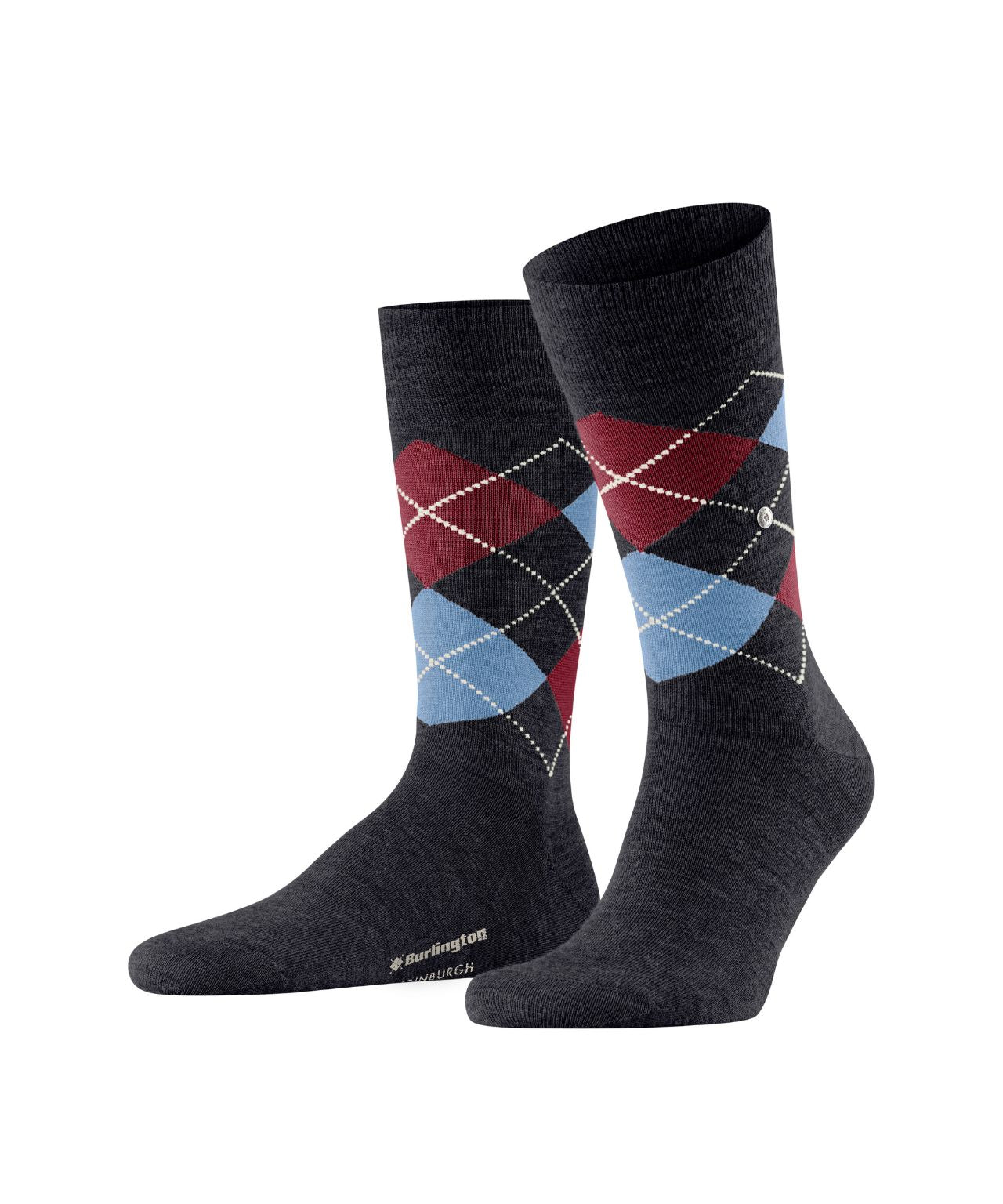 The absolute classic! The mottled socks are known for their trendy check pattern and the typical Burlington Clip. The high-quality virgin wool in the socks ensures comfort. This way you can also give a chic suit and beautiful lace-up shoes a fashionable and refined touch. Design & Extras Mixed with diamond pattern Burlington Side Clip Warm new wool Properties Gender: Male Pattern: Argyle Transparency: Opaque Material: 63% New Wool, 37% Polyamide Look: Smooth Shaft Length: Calf Wearing comfort: Skin-friendly Type of board: rib Padding: None Sole: Normal Style: Casual