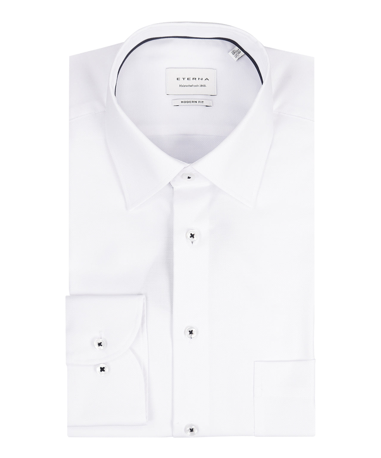 A modern Eterna shirt made from lyocell and cotton, among other materials. Lyocell is a synthetic fiber made from the cellulose of wood pulp. Lyocell is lightweight, highly breathable, dries quickly, and absorbs minimal odors. Ideal for warmer days.