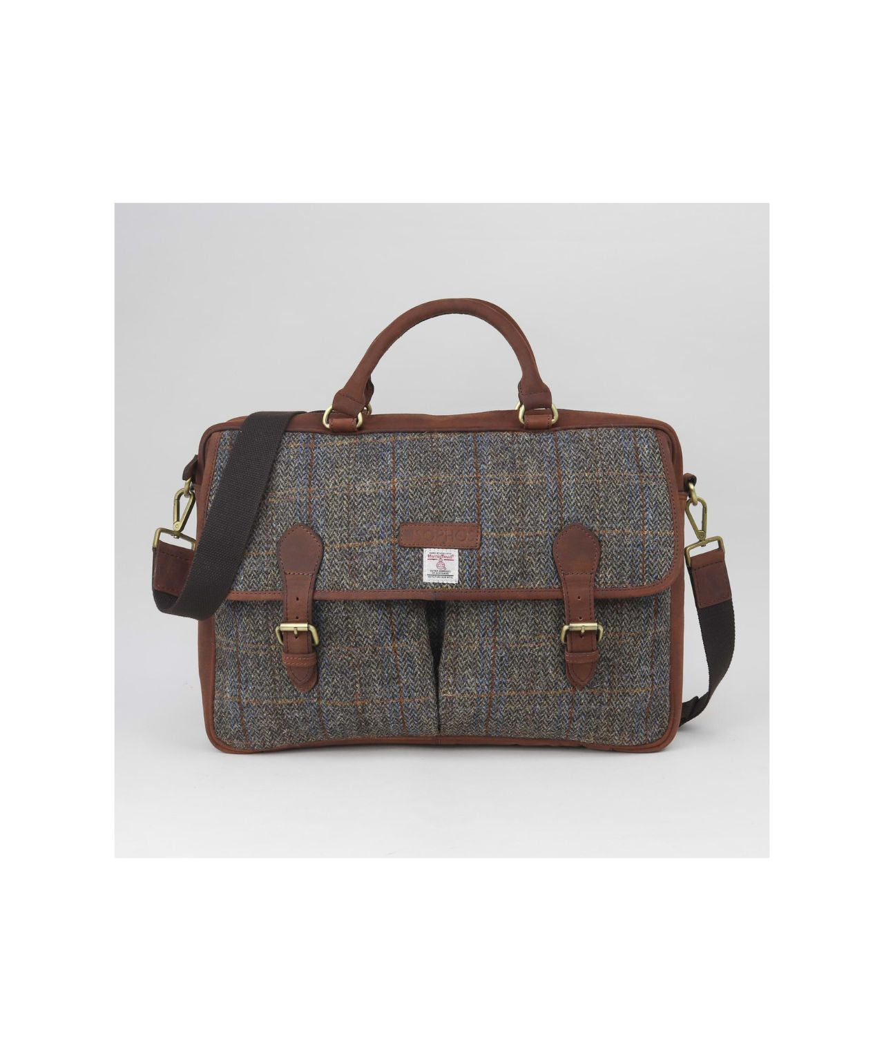 Large practical shoulder bag made of genuine leather, canvas back and the front is lined with original Harris Tweed. The bag has an adjustable shoulder strap, which you can also detach as needed. It also has two handles, two front pockets, and an additional interior zippered pocket. The back also features a zippered pocket. The main compartment also closes with a zipper. The bag is 38 cm wide, 32 cm high, and 18 cm deep.