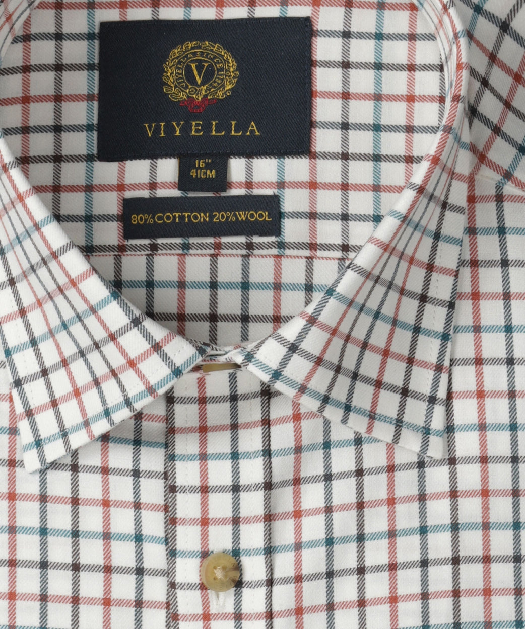 Viyella shirt made of 80% cotton and 20% wool, with a classic collar and a chest pocket.