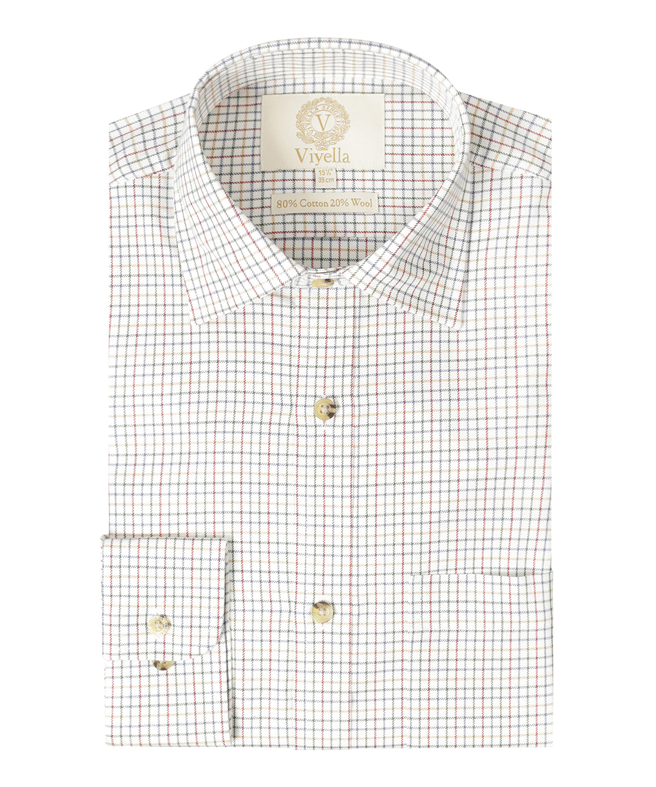 Viyella shirt gemaakt van 80% katoen en 20% wol, voorzien van een klassiek boord en een borstzakje.