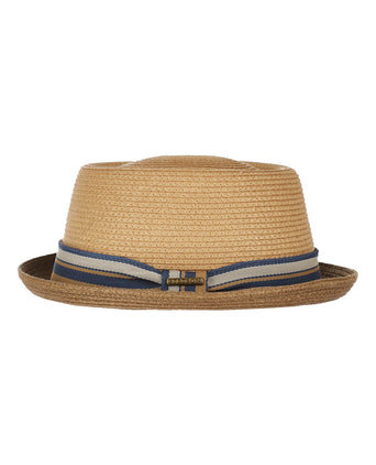 De pork pie hoed dankt zijn naam aan zijn kenmerkende platte kroon en smalle rand, die doet denken aan de vorm van een traditionele Engelse pork pie. Deze hoed werd populair in het midden van de 19e eeuw in Engeland, waar hij aanvankelijk werd gedragen door zowel mannen als vrouwen. In de jaren 1920 en 1930 beleefde de pork pie een heropleving in Amerika, waar hij werd geassocieerd met jazzmuzikanten en artiesten, en later met iconen zoals Buster Keaton. De hoed groeide uit tot een symbool van nonchalante elegantie en artistieke flair. Tegenwoordig blijft de pork pie hoed een geliefd accessoire voor heren die kiezen voor tijdloze stijl met een unieke twist.