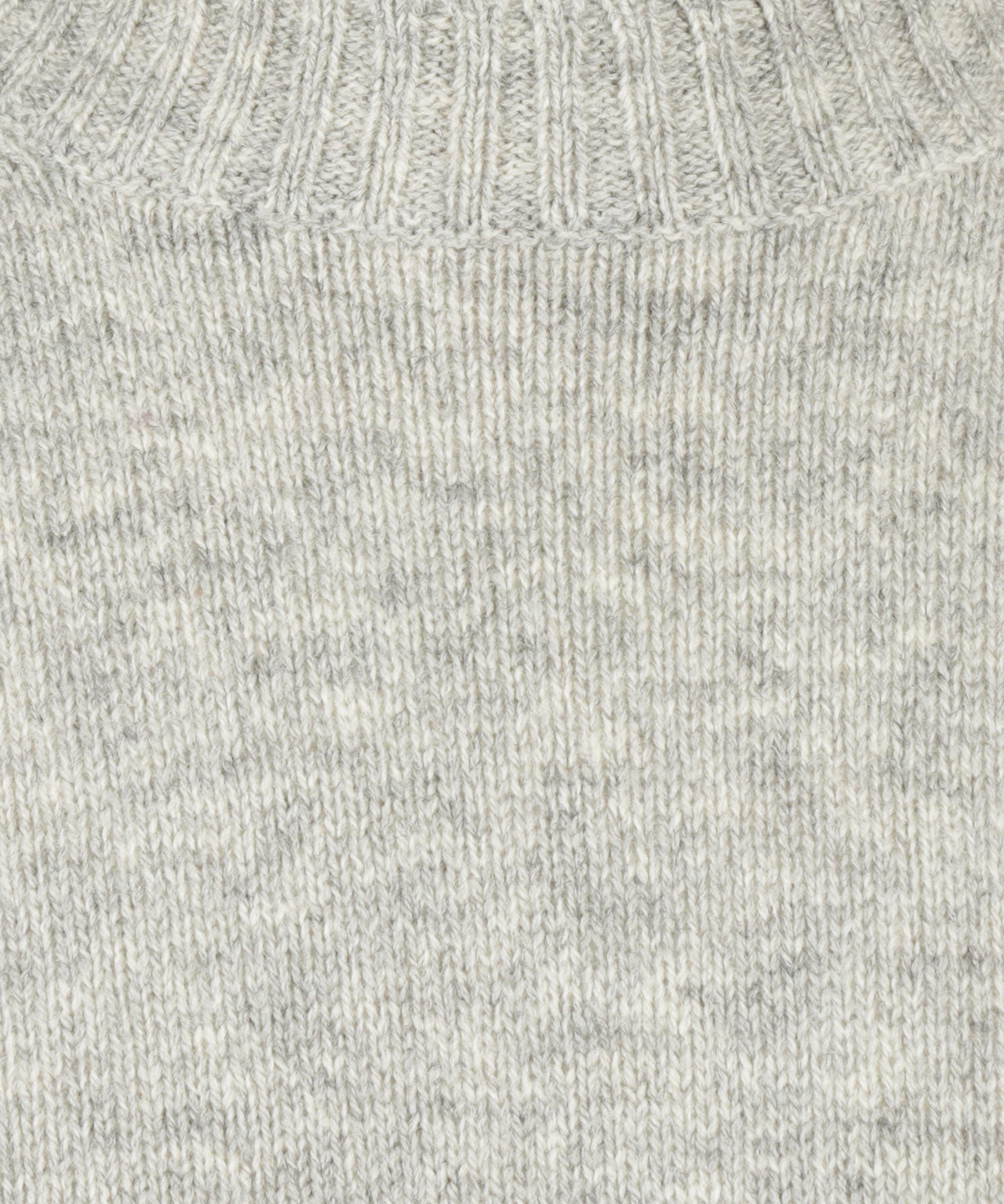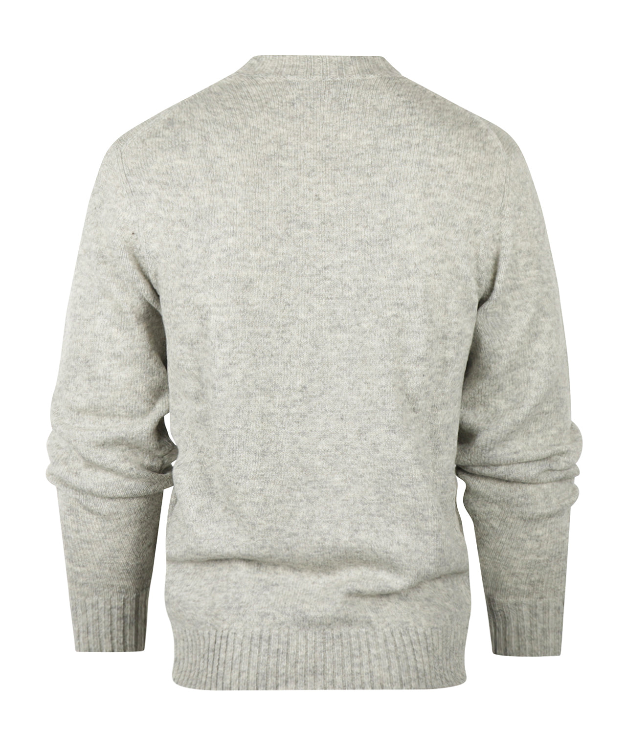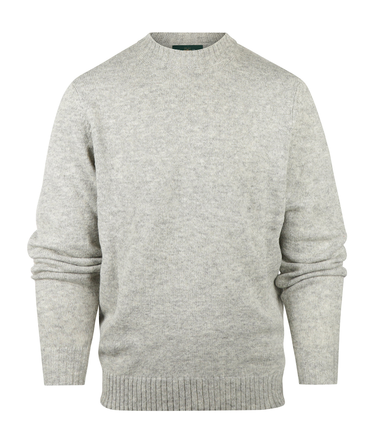 Ronde hals pullover gemaakt van Shetland wol, dat is een ruigere wol dan lamswol, van de Engelse breier Alan Paine.