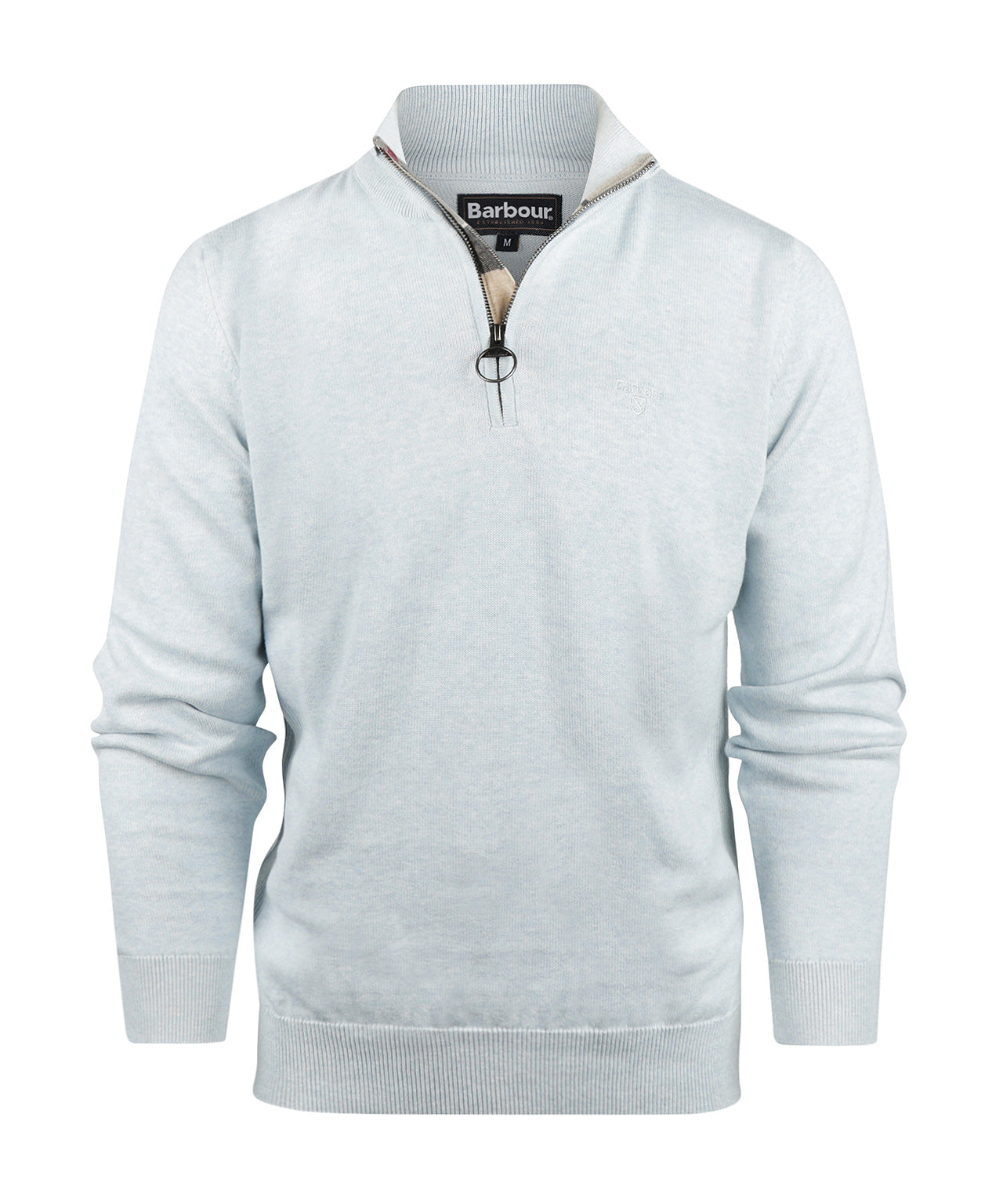 Een echte garderobeklassieker: deze Quarter-Zip trui wordt verfijnd door subtiele Barbour-details. Uitgevoerd in een lichte katoenen knit en voorzien van een ritssluiting met tartan afwerking aan de binnenzijde en de kenmerkende ring-puller. Het ton-sur-ton geborduurde logo op de borst maakt de look compleet.
