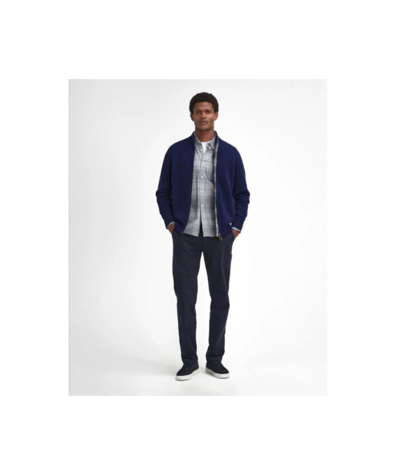 Wollen ritsvest van Barbour, gemaakt van wol. De rits kan ook van onderen geopend worden. Het vest heeft twee handige steekzakken.