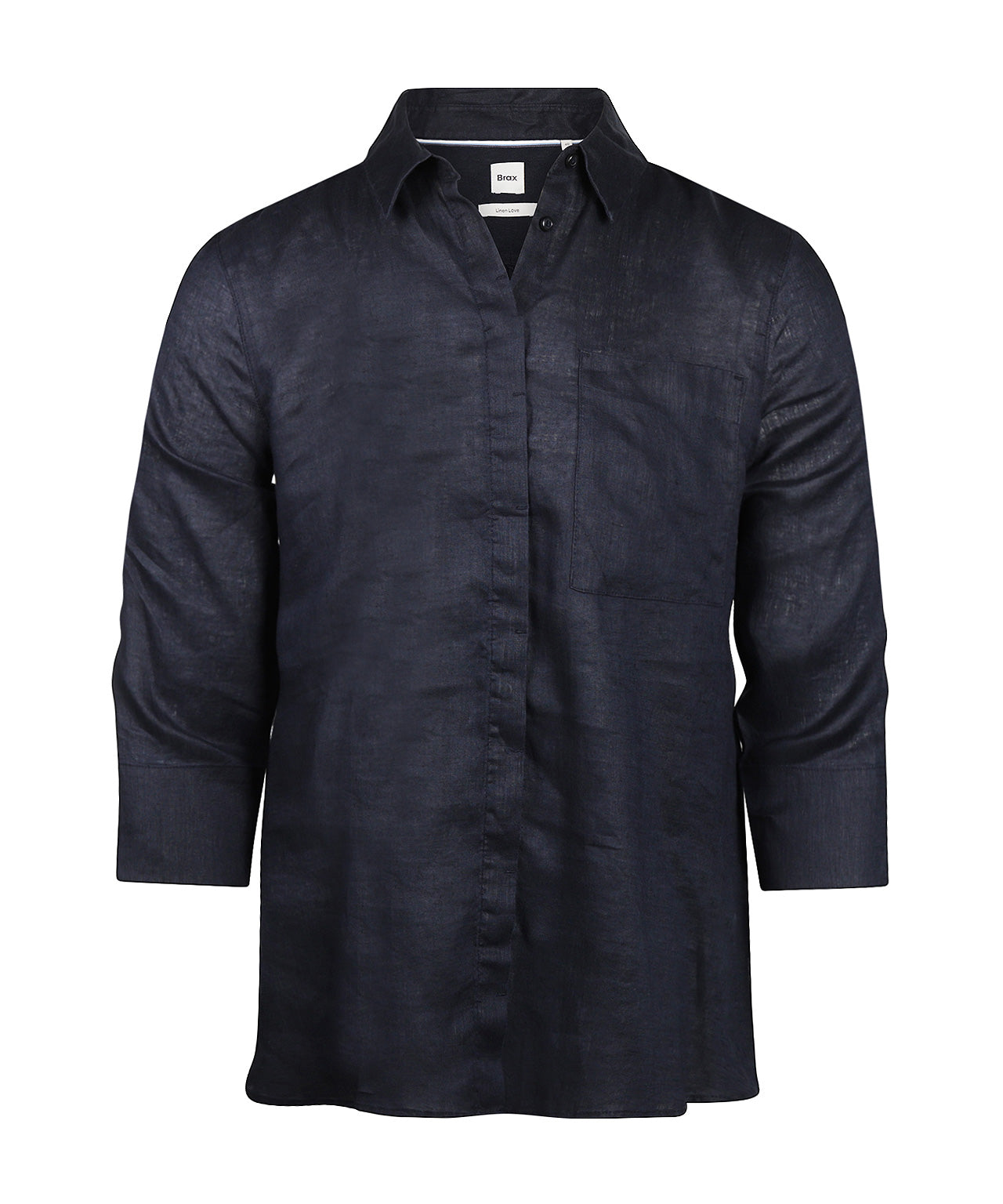 De blouse style VICKI is een klassieke damesblouse met een licht uitlopende pasvorm en overhemdkraag. De 3/4-mouwen en verborgen knoopsluiting zorgen voor een verzorgde uitstraling. De subtiele borstzak, plooitjes en zijsplitten geven de blouse een vrouwelijke touch. Gemaakt van 100% linnen, biedt de blouse comfort en een elegante textuur voor warme dagen.