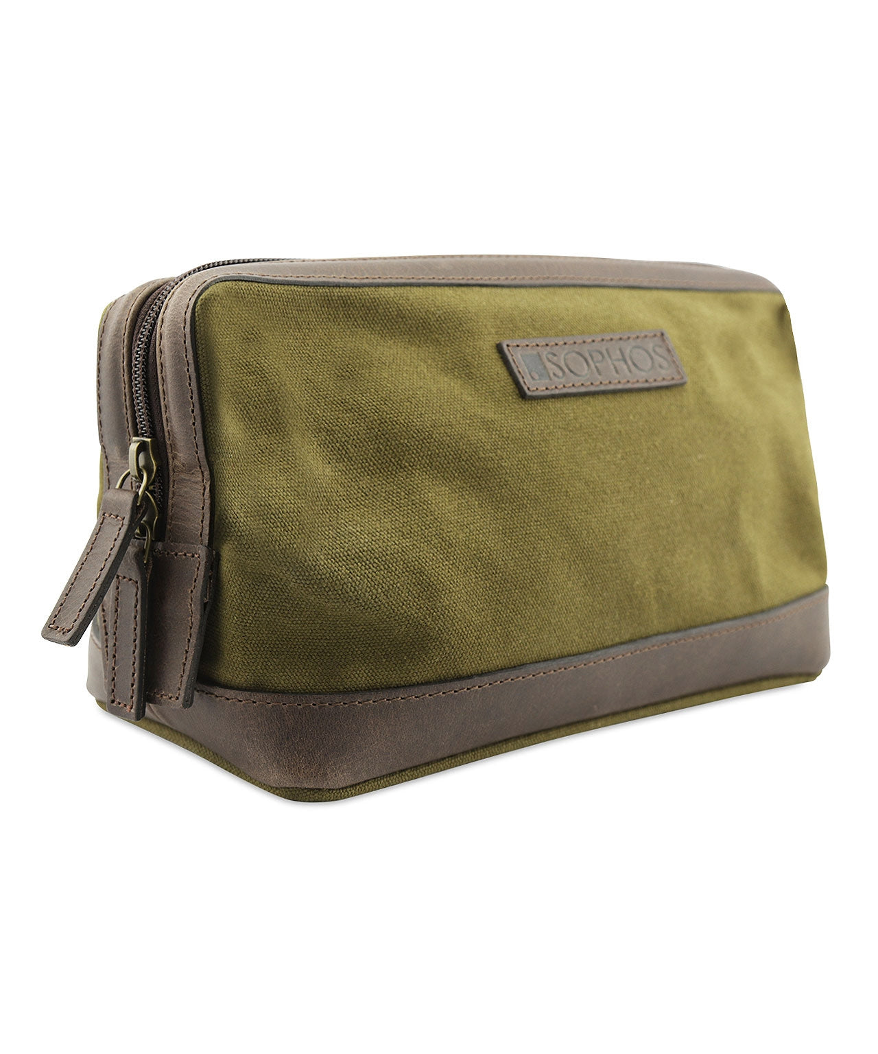 Toilettas gemaakt van stevig canvas katoen met lederen accenten.