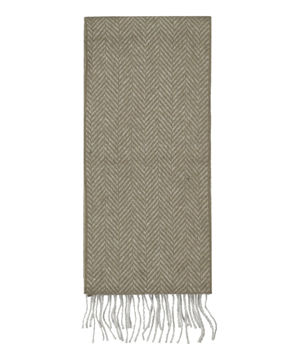 Merino (95%) met cashmere (5%) sjaal. Deze sjaal is ongeveer 23 cm breed en 170 cm lang. (200 cm met de franjes meegerekend)
