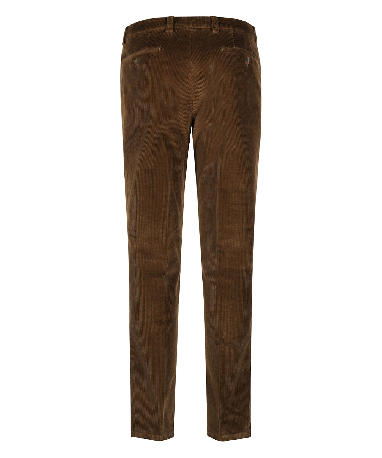 Klassieke corduroy brede rib pantalons zonder bandplooi en omslag. De pantalon heeft diepe zakken en lussen rond de taille voor een riem. De zakken op de achterzijde zijn voorzien van knopen. De pantalon is gemaakt van 97% katoen met 3% elastan voor een comfortabele fit.