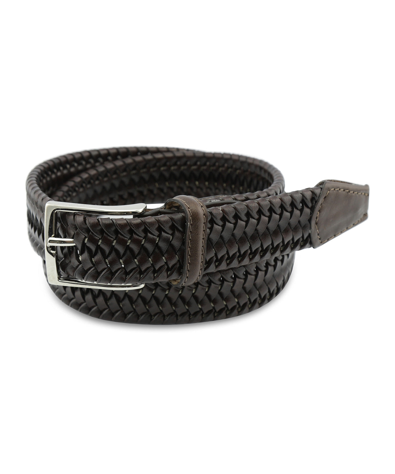 Gevlochten riem gemaakt van leer met elastiek, hierdoor veert de riem een beetje met u mee.