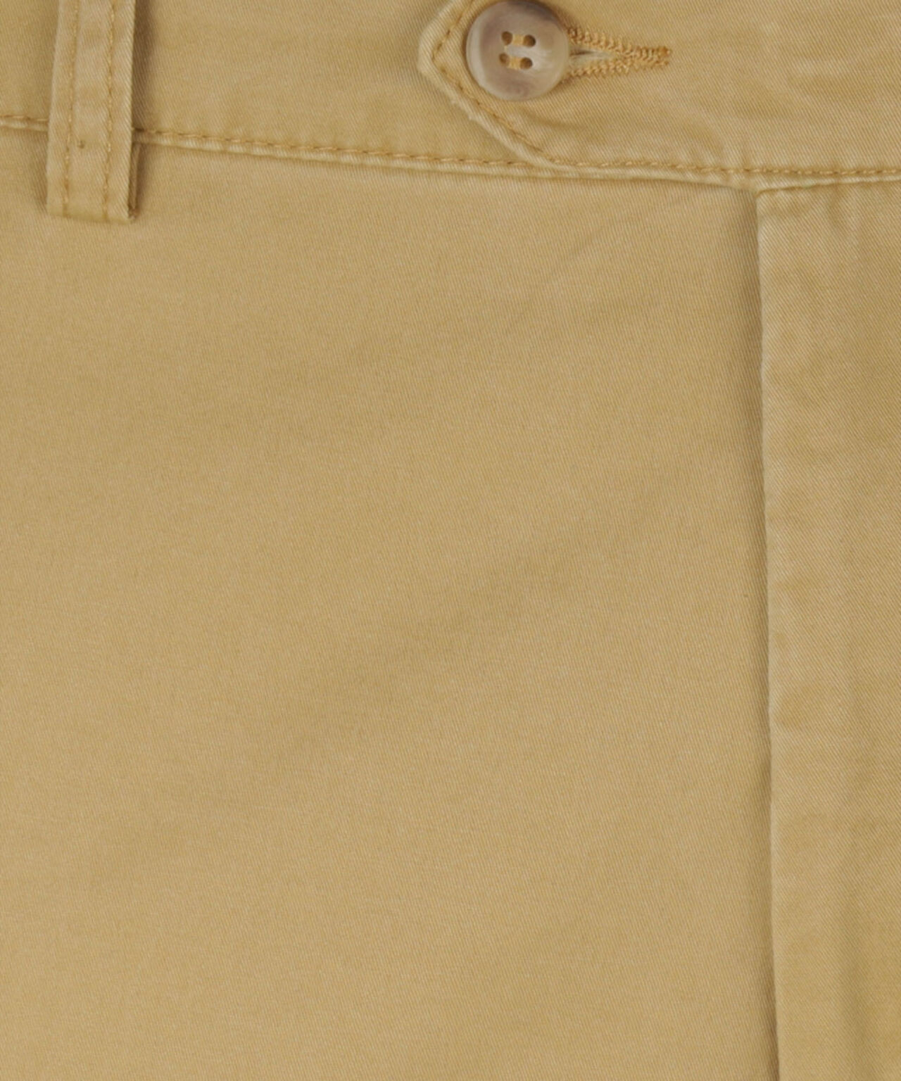 Dunne katoenen broek in een chino uitvoering, ideaal voor de warmere dagen. Deze chino wordt speciaal voor The English Hatter gemaakt. De broek heeft 2 ruime zakken voor en 2 afsluitbare zakken op de kont. Zoals een chino hoort te zijn is deze broek uitgevoerd in een flat front zonder omslag aan de onderkant. De katoenen stof heeft 2% elastan mee geweven zodat de broek comfortabel zit. Wij adviseren om de broek op maximaal 40 graden te wassen of naar de stomerij te brengen.