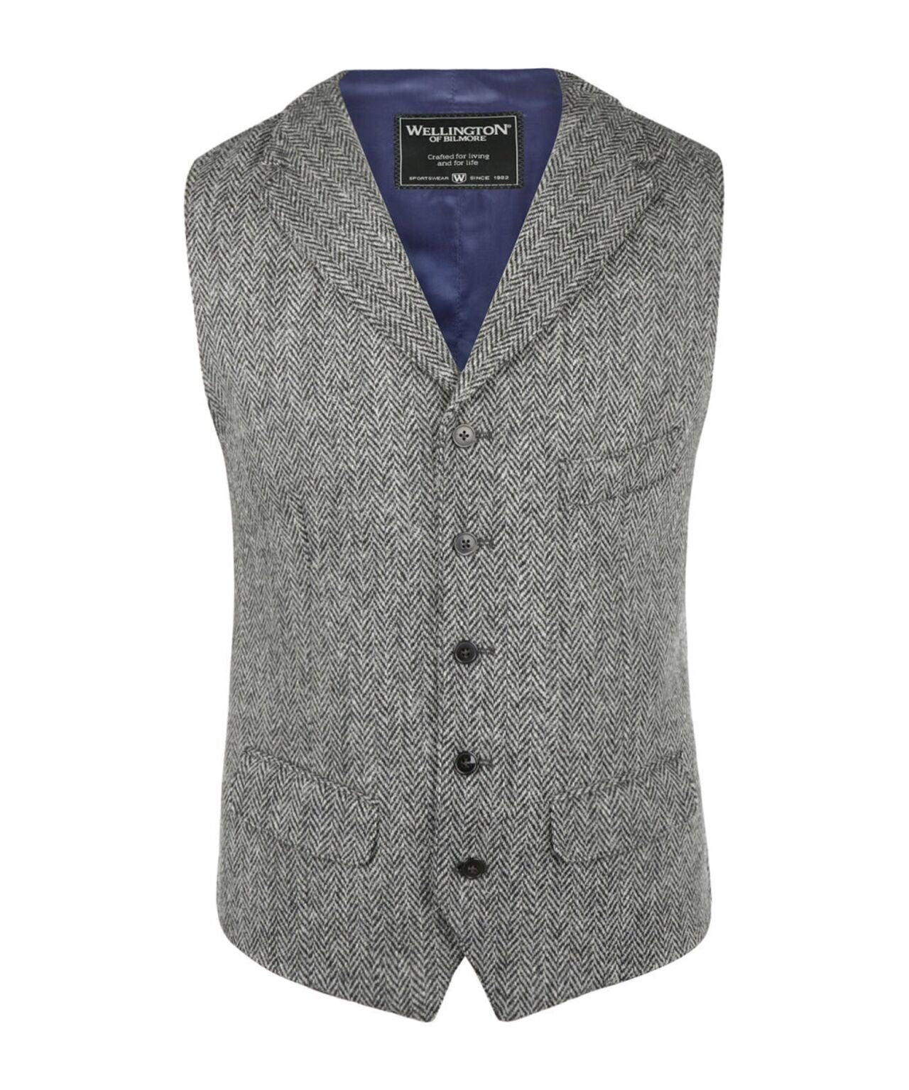 Klassiek gilet van Wellington gemaakt van wol. Voorzien van twee kleine zakjes aan de voorzijde en een binnenzak. De achterzijde en voering heeft een mooie satijnen glans gemaakt van 55% polyester en 45% viscose.