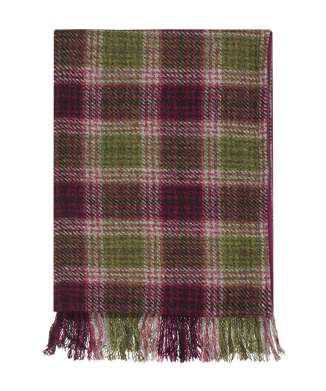 Sjaal gemaakt van ruige Harris Tweed met een tegenvoering aan één zijde van zachte fleece. De sjaal is ongeveer 27cm breed en 140cm lang.