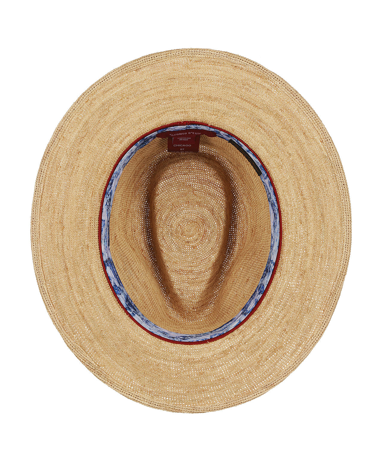 De Hoed Raffia Chicago is vervaardigd uit 100% riet, waardoor hij licht, ademend en perfect geschikt is voor warme dagen.
