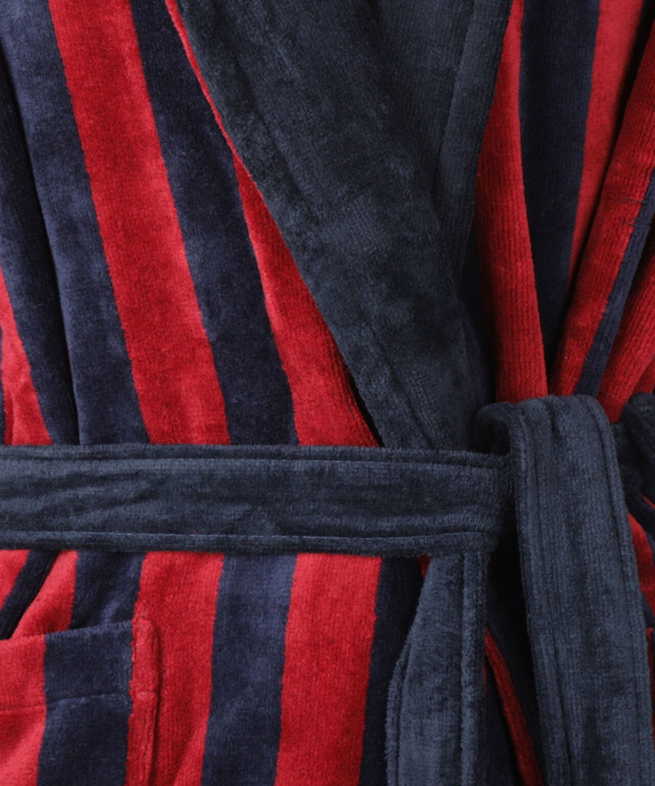 Gestreepte kamerjas van katoen. Deze kamerjas is voorzien van 2 zakken op de voorzijde en uiteraard een ceintuur.