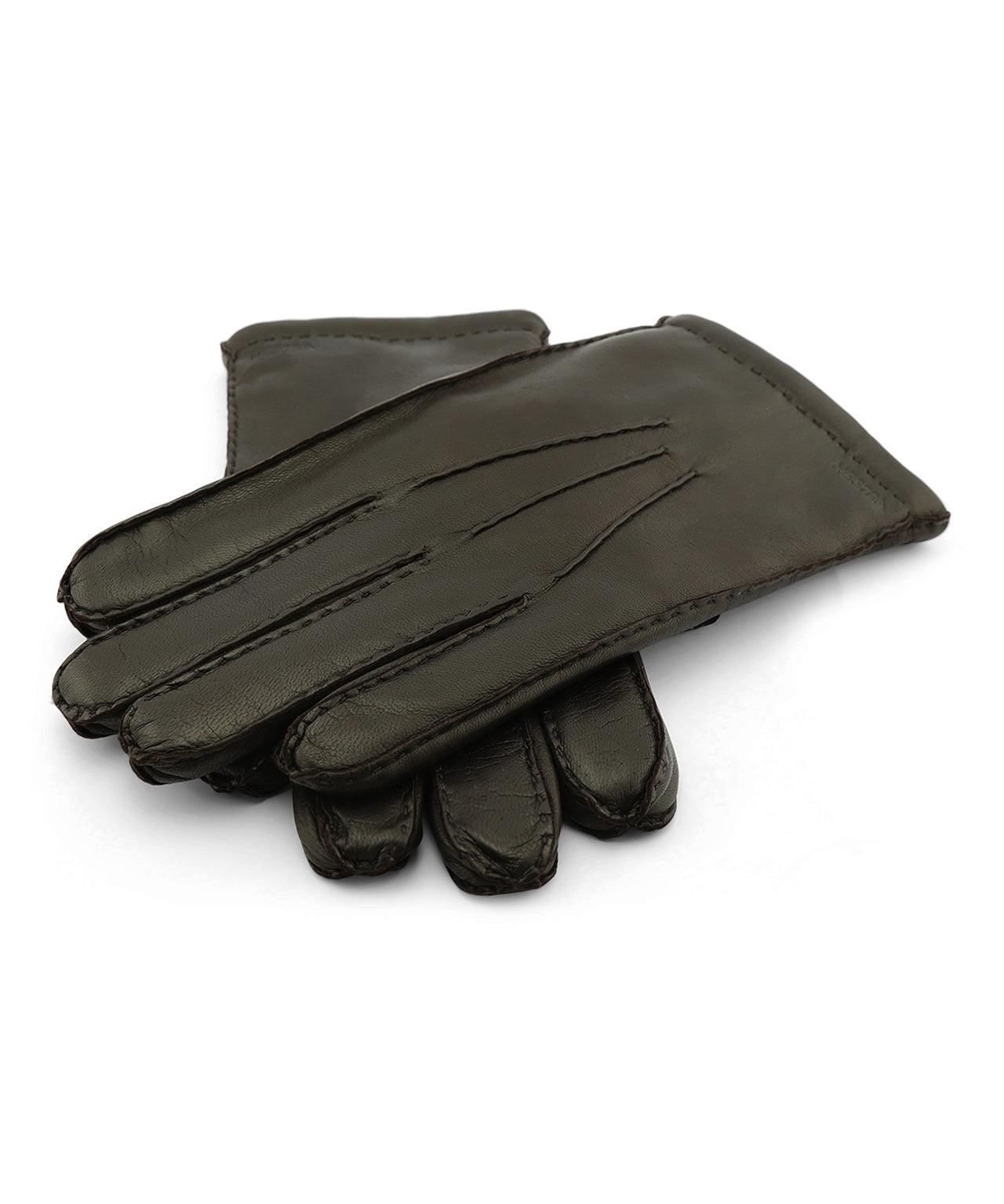 Warme lederen handschoen met een grove warme schapenwol voering.