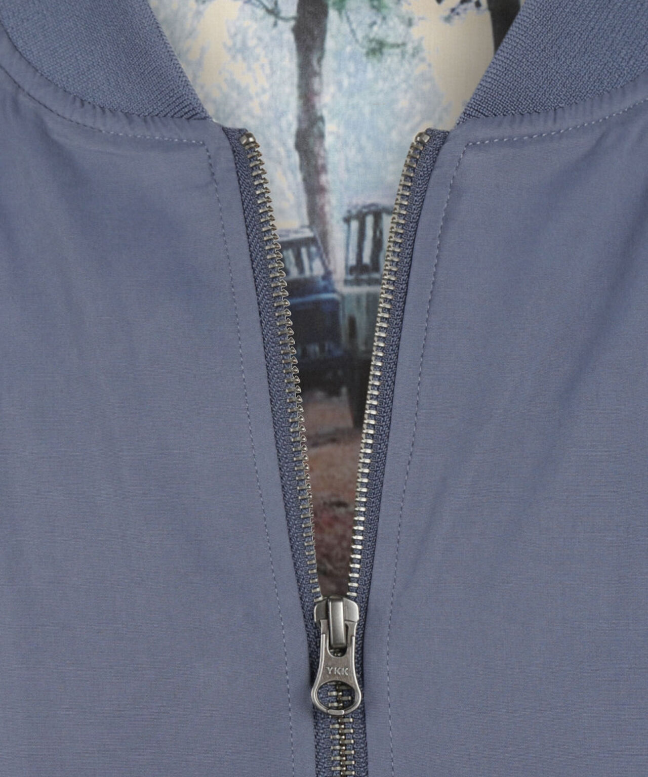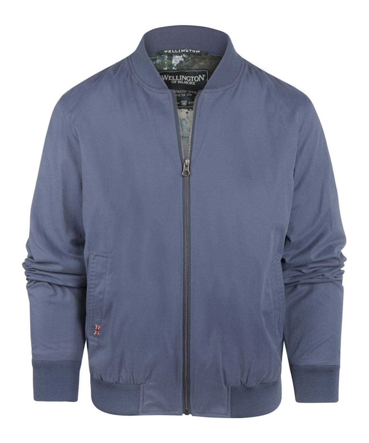 Wellington kort sportief jack met een gebreid bord aan de onderzijde van het jack en aan de mouwen,. Voorzien van 2 steekzakken en een binnenzak. De voering heeft een print van oude Land Rovers.