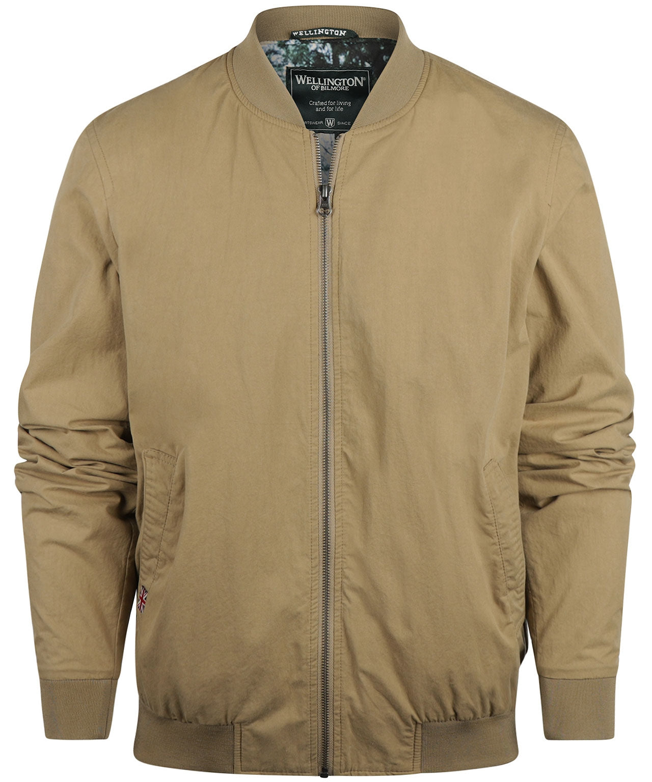 Wellington kort sportief jack met een gebreid bord aan de onderzijde van het jack en aan de mouwen,. Voorzien van 2 steekzakken en een binnenzak. De voering heeft een print van oude Land Rovers.