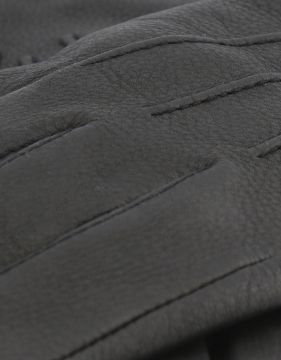 Handschoen gemaakt van hertenleer, hertenleer is van nature een wat vollere leer dan rundleer en ook soepeler. Deze handschoen heeft een wollen voering.