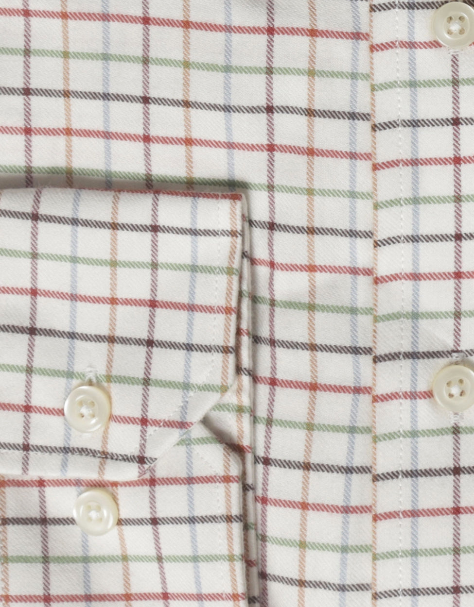Brushed Cotton " shirt gemaakt voor The English Hatter. Dit shirt heeft een button down boord en een handig borstzakje. Het shirt heeft een moderne pasvorm, m.a.w. licht getailleerd.
