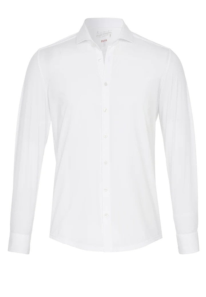 Pure Functional Shirt, dit shirt is anders dan al onze andere shirts. Pure Functional shirt is gemaakt van 87% polyamide en 13% elastan. Deze high-tech stof is ontwikkeld en wordt gemaakt in Noord-Italië en heeft zijn oorsprong uit de buitensport. Dankzij deze high-tech stof ademt dit shirt zeer goed, voelt koel aan (ook als het heel warm is) en is strijkvrij. Het shirt maskeert ongewenste geurtjes en heeft een UV 50+ protectie. Door de elastan heeft dit shirt een "four-way" stretch en per boordmaat verspringt ook de bodymaat. Kortom een perfecte fit! (zie voor de maattabel het dropdown menu "Omschrijving")