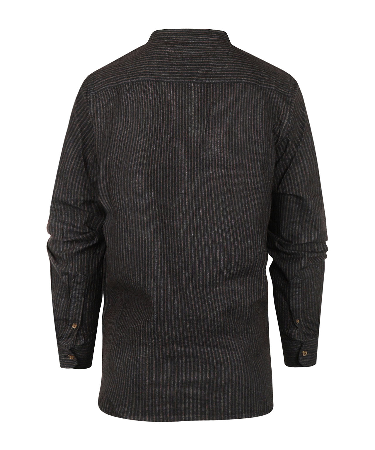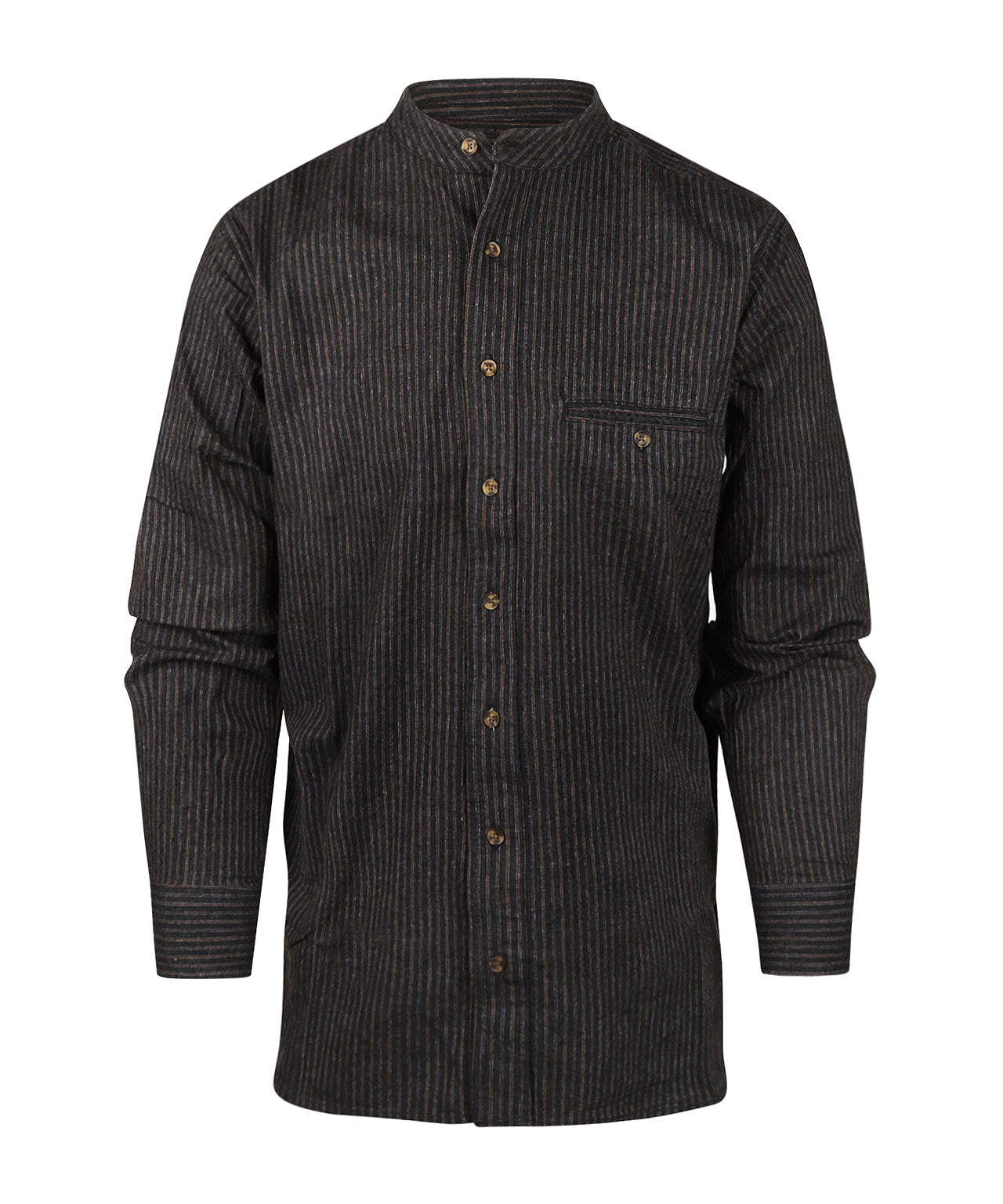 Katoenen "Grandfather shirt" van het Ierse merk Lee Valley. Dit vrijetijds shirt kenmerkt zich door een opstaande boord en de stevige katoen. De grandfather shirts hebben een rechte pasvorm en vallen mede hierdoor ruim uit. We hebben ze in 2 kwaliteiten katoen: "glad" katoen die zijn voorzien van een volledige knopenlijst en de flannel katoen, deze hebben een korte knopenlijst.