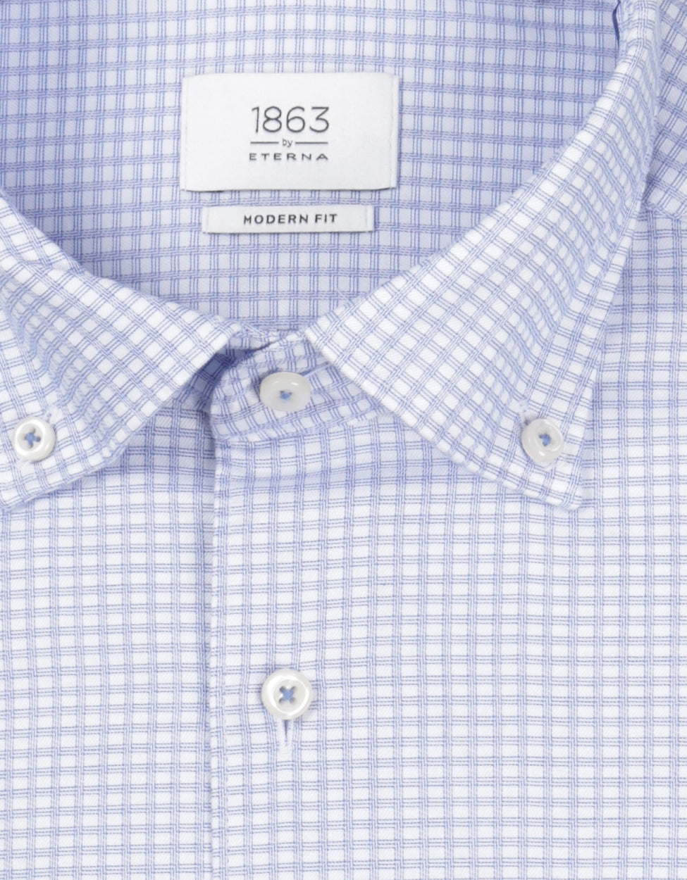 Katoenen button down shirt van Eterna, dit shirt heeft een moderne pasvorm en normale lengte mouwen.