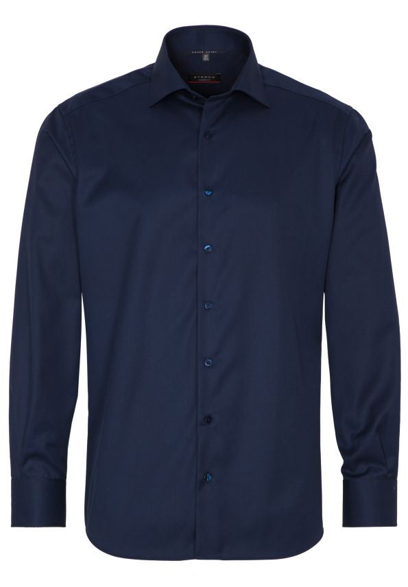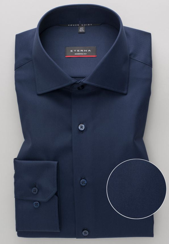 Modern fit wide spread shirt van Eterna. Dit shirt heeft een moderne pasvorm, is enkel machet en heeft geen borstzakje. Het shirt is 100% katoen en strijk vrij.
