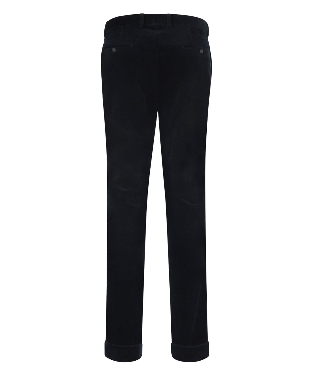 Klassieke corduroy smalle rib pantalon met bandplooi en omslag. De pantalon heeft diepe zakken en lussen rond de taille voor een riem. De zakken op de achterzijde zijn voorzien van knopen. De pantalon is gemaakt van 97% katoen met 3% elastan voor een comfortabele fit. De breedte van de pijp bij de omslag is 19 cm (plat gemeten).
