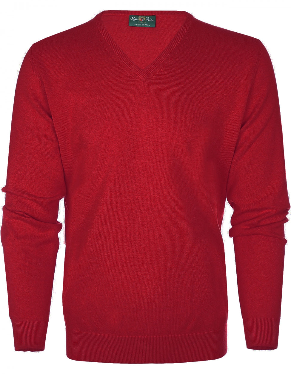 Een effen gebreide v-hals trui, gemaakt van een luxe mengsel van hoogwaardige katoen en cashmere. De trui heeft aan de mouwen en onderkant een boord en heeft een normale fit. Gemaakt van 92% katoen 8% cashmere.