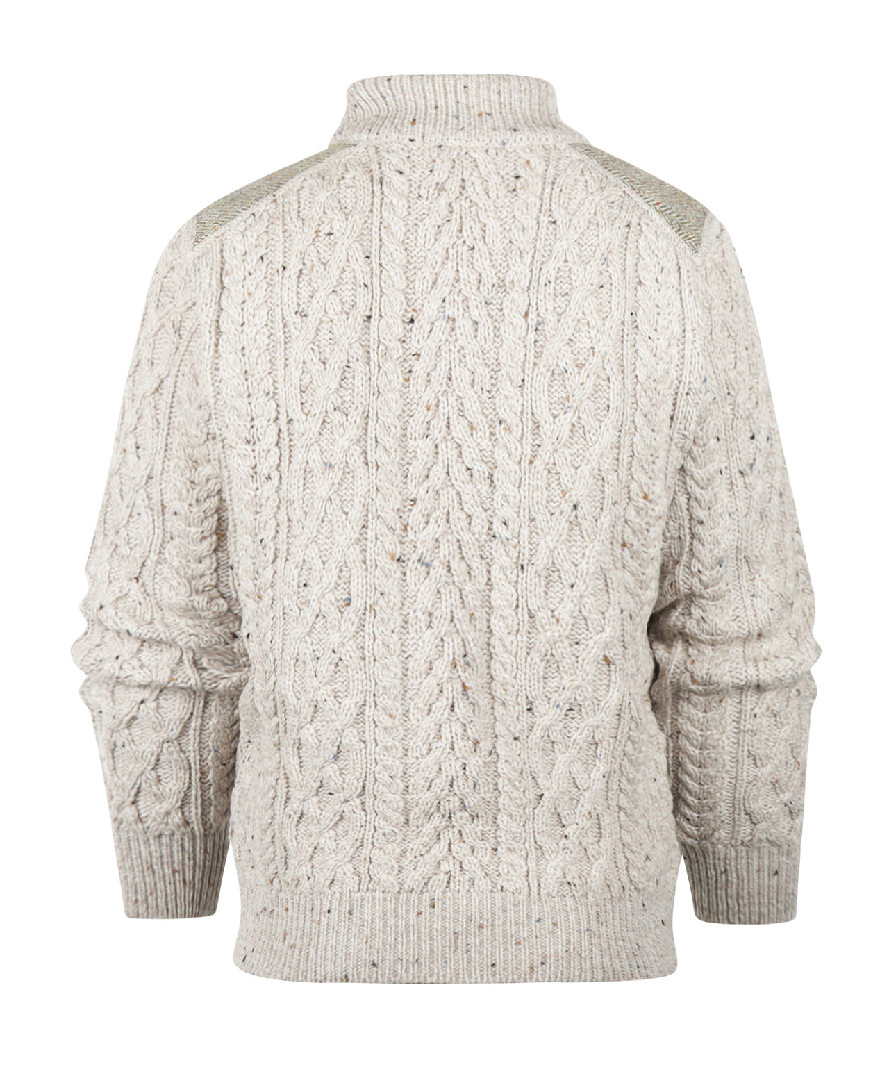 Deze luxueuze pullover is vervaardigd uit 100% zachte merinowol en uitgevoerd in een traditioneel Iers Aran-kabelbreisel, wat de trui een rijke, ambachtelijke uitstraling geeft. De hoogwaardige merinowol biedt uitstekende warmte en voelt heerlijk zacht aan op de huid. Dankzij de subtiele ritskraag is de trui zowel stijlvol als veelzijdig, ideaal voor zowel casual als meer geklede momenten.