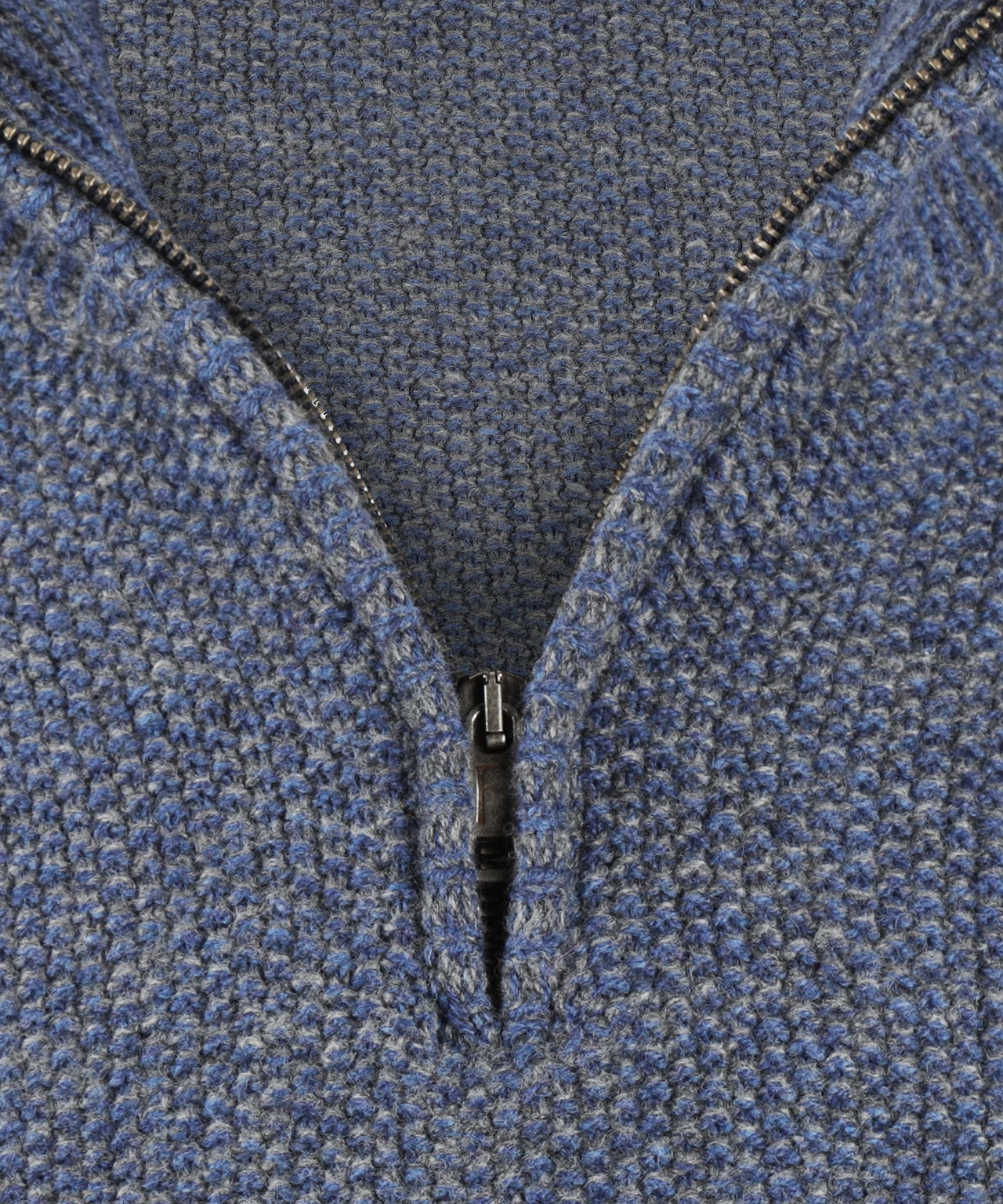 Fijne gebreide wollen ritskol pullover van de Ierse breier Fisherman.