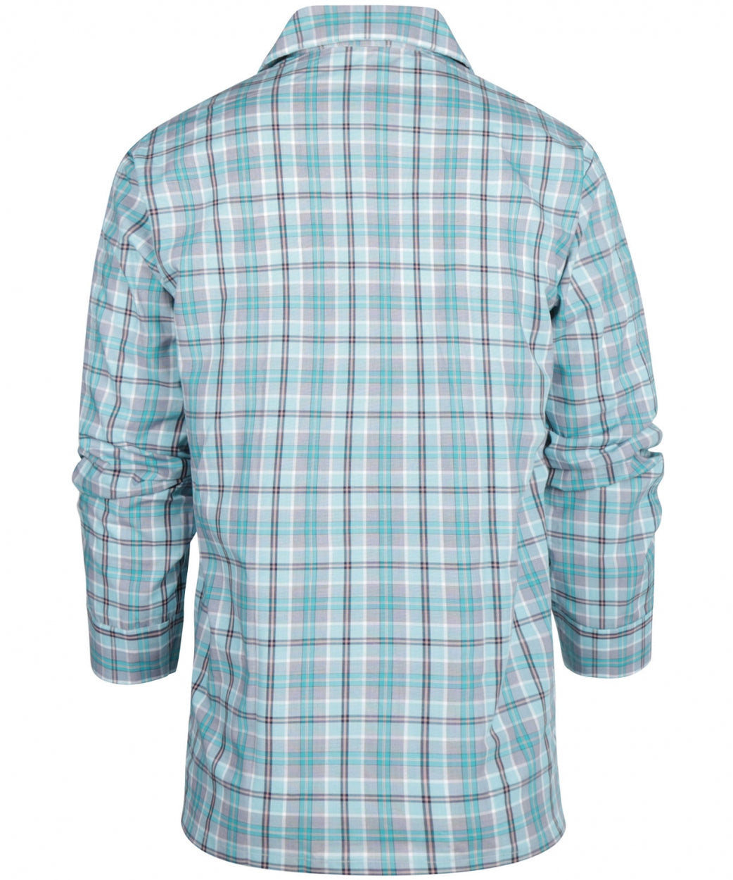 Luxe katoenen herenpyjama uit de Savile Collectie van Derek Rose. Deze complete set, bestaande uit een shirt met knoopsluiting en een lange broek, is vervaardigd van hoogwaardig katoen voor optimaal comfort en een aangename nachtrust.