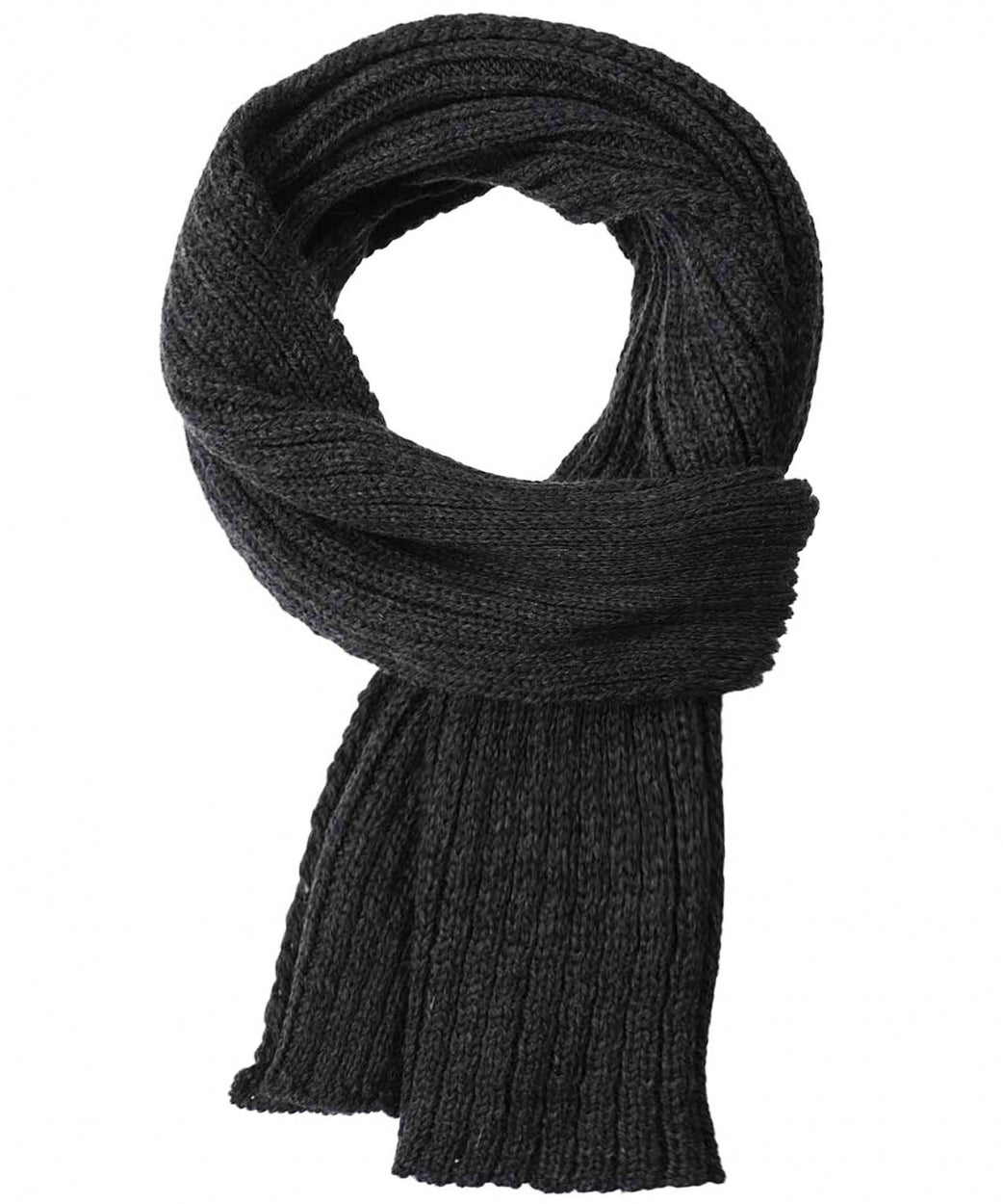 Gebreide merino wollen sjaal in de ribbelsteek. De sjaal heeft rechte uiteindes. De sjaal meet 175 cm x 22 cm