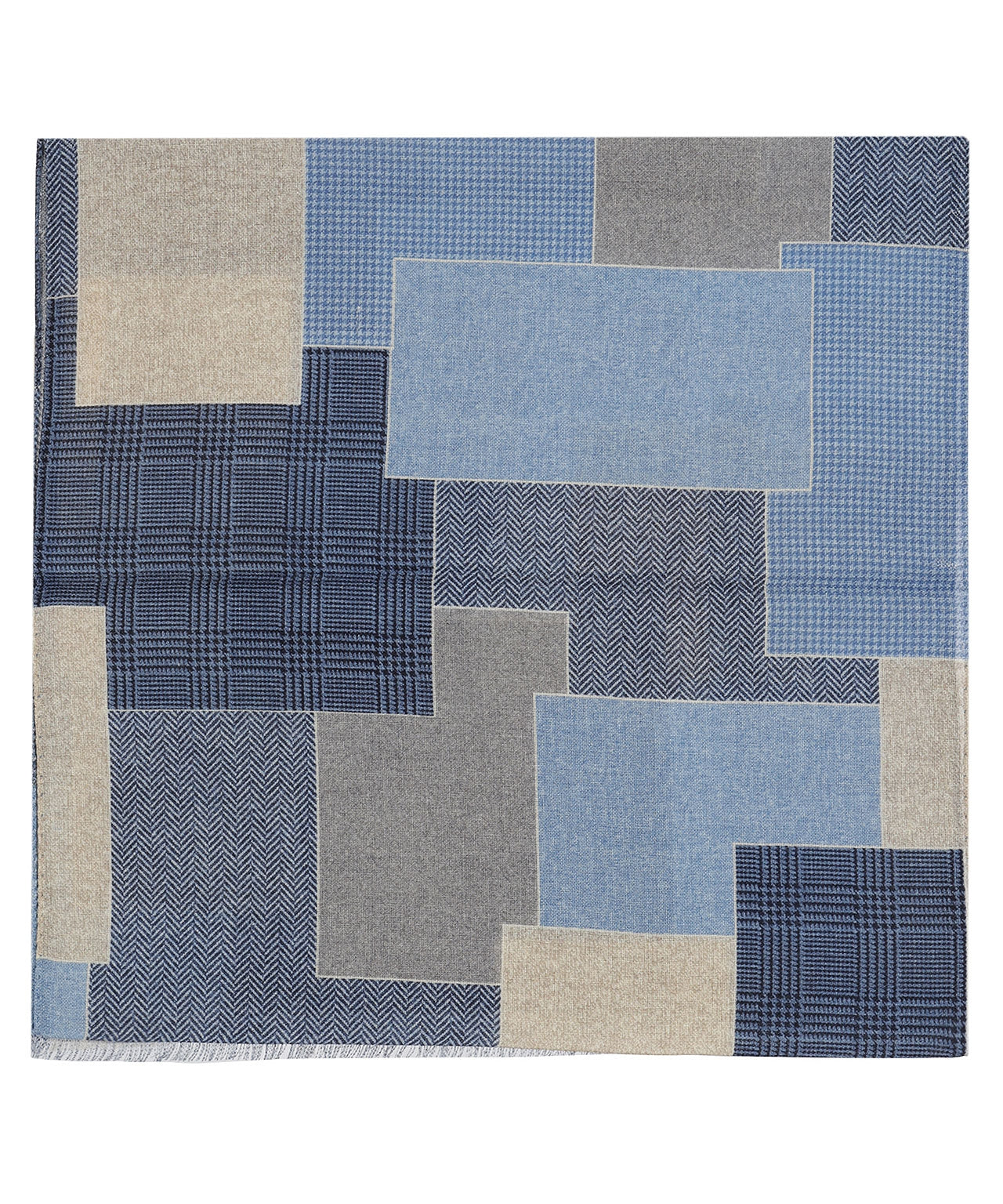 Sjaal gemaakt van 100% wol met een patchwork look. Deze sjaal is ongever 44cm breed en 180cm lang.