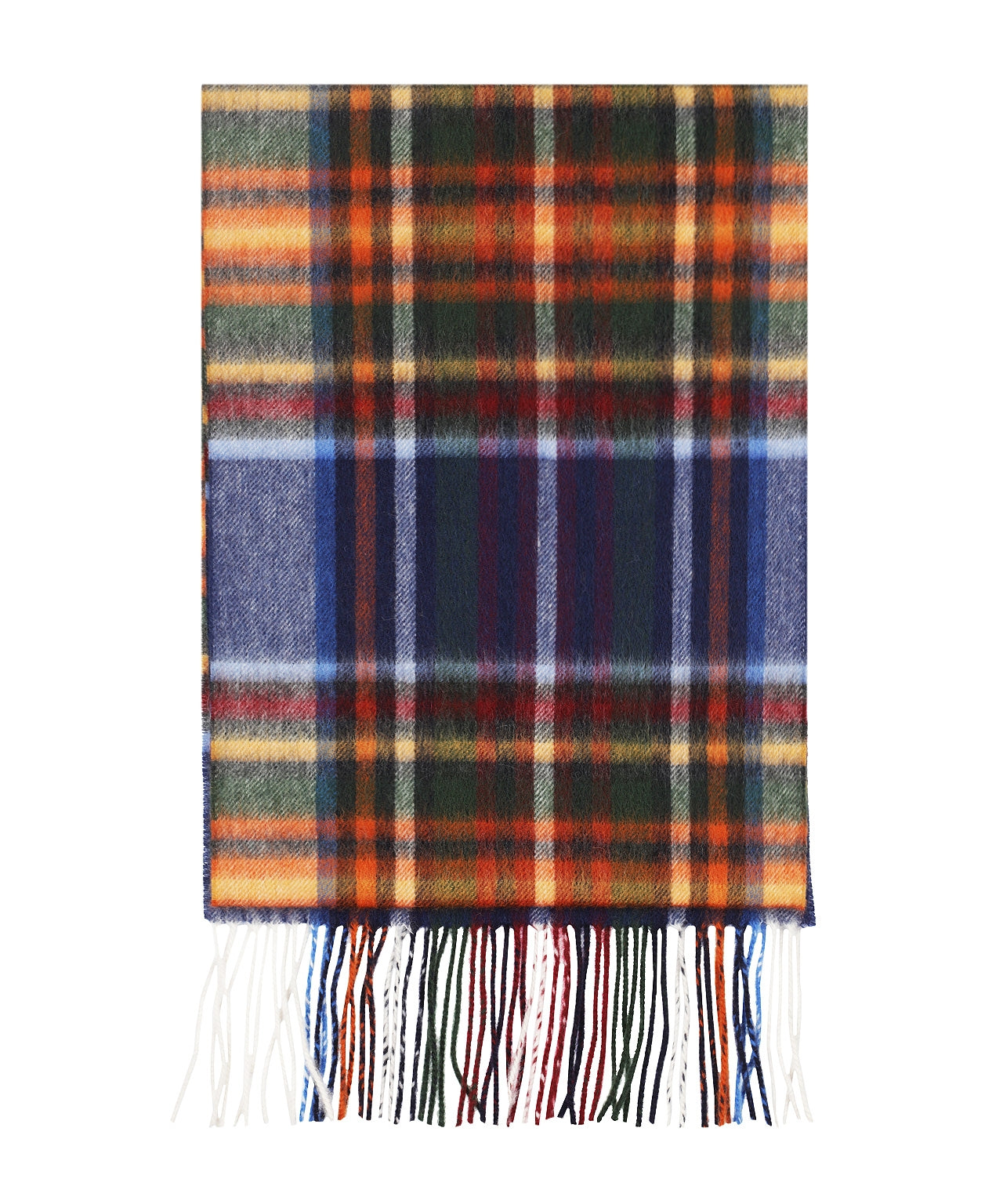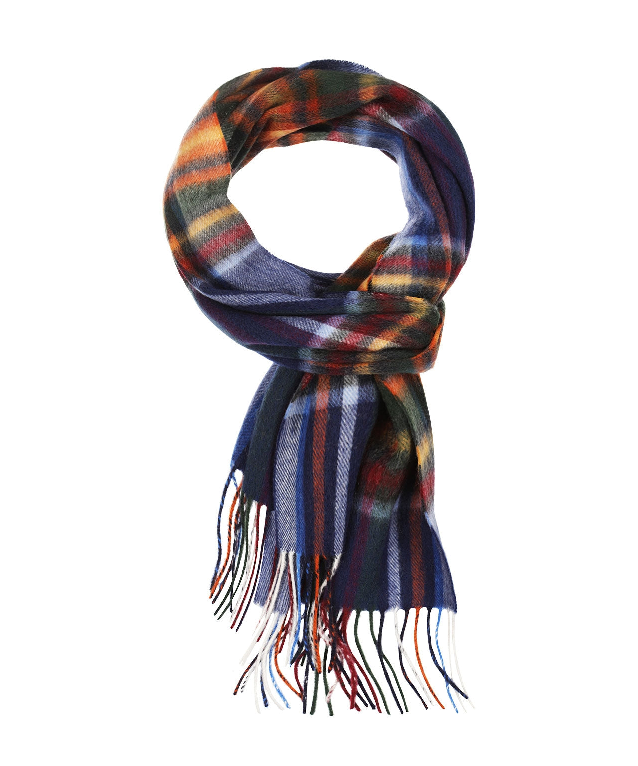 Kleurrijke sjaals gemaakt van 70% lamswol en 30% cashmere. De sjaals zijn 30cm breed en 190cm lang.