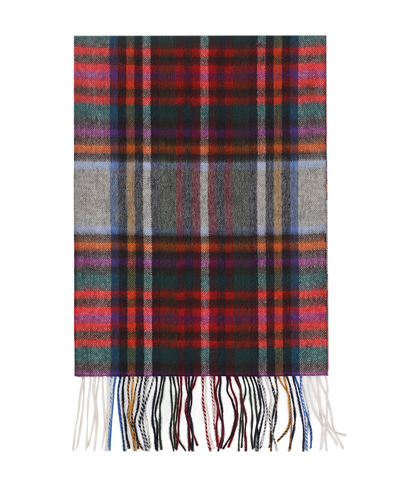Kleurrijke sjaals gemaakt van 70% lamswol en 30% cashmere. De sjaals zijn 30cm breed en 190cm lang.