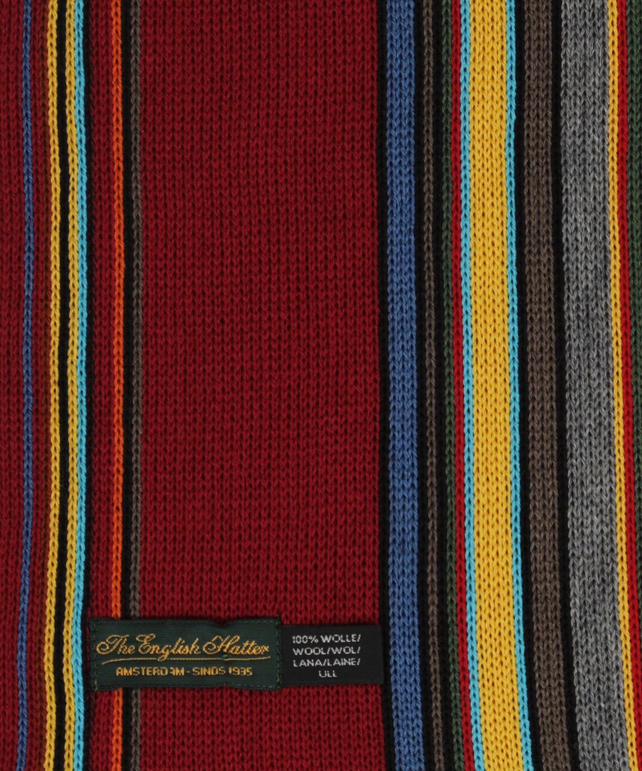 Leuke kleurrijke gebreide sjaal van wol. De sjaal is ongeveer 26cm breed en 180cm lang.