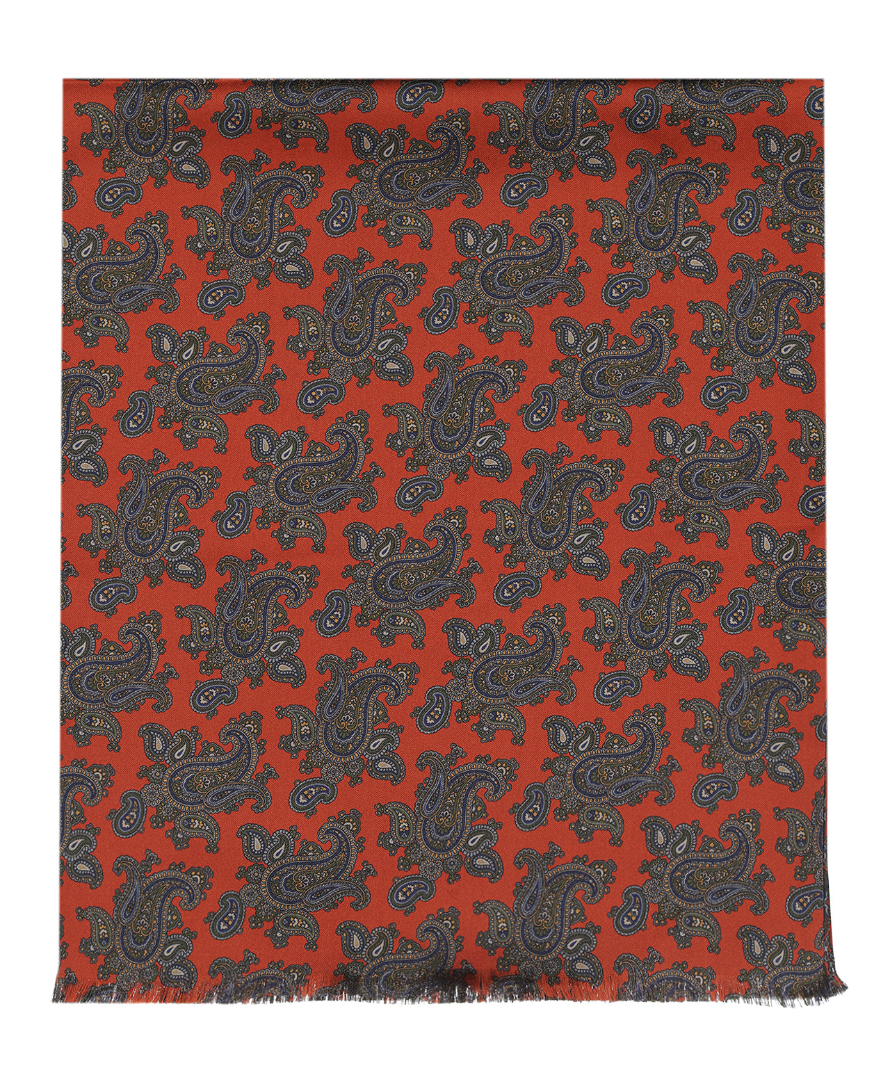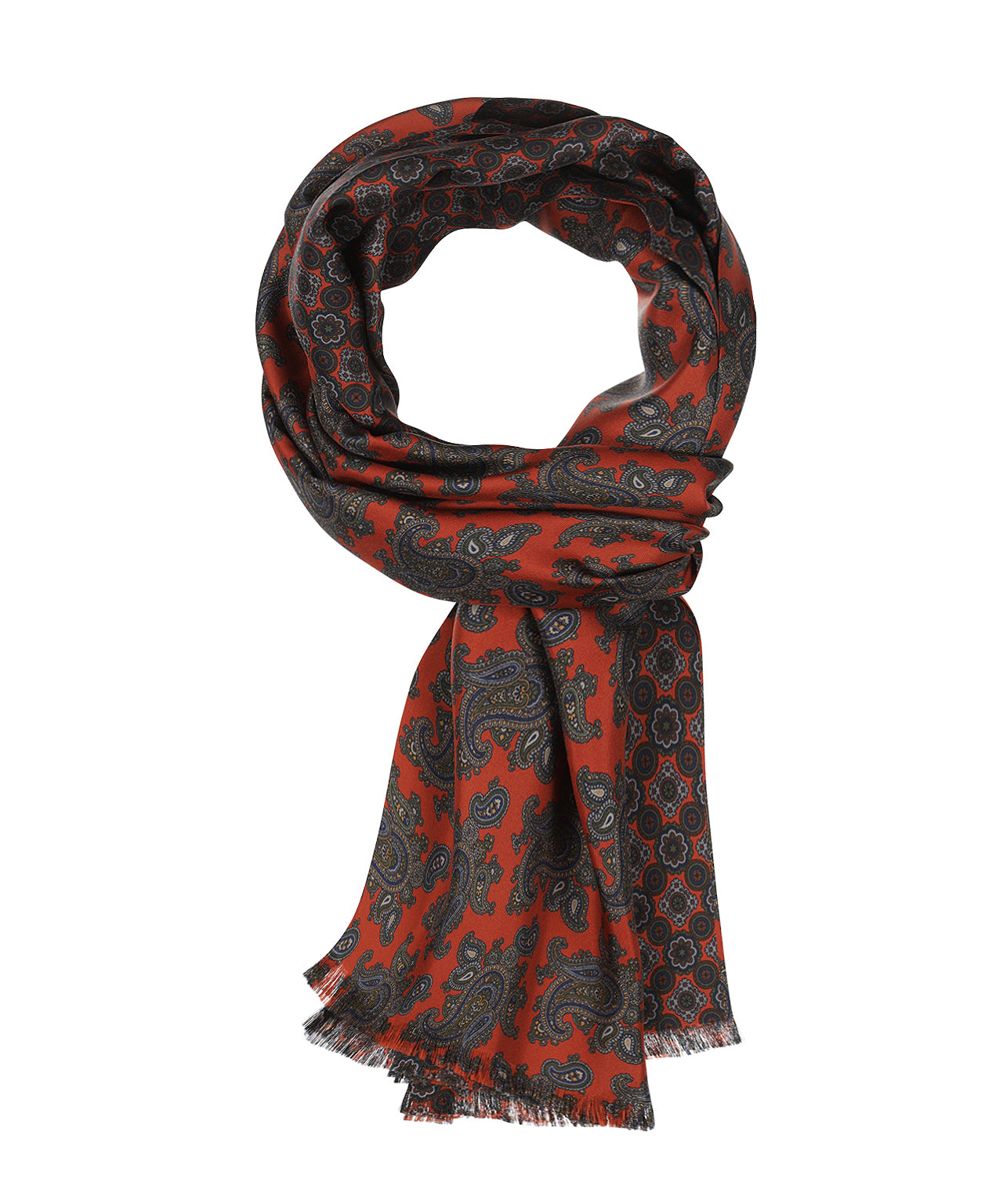 Tweezijdig geprinte 100% zijden sjaal. Lengte is ongeveer 160cm, de breedte is ongeveer 33cm.