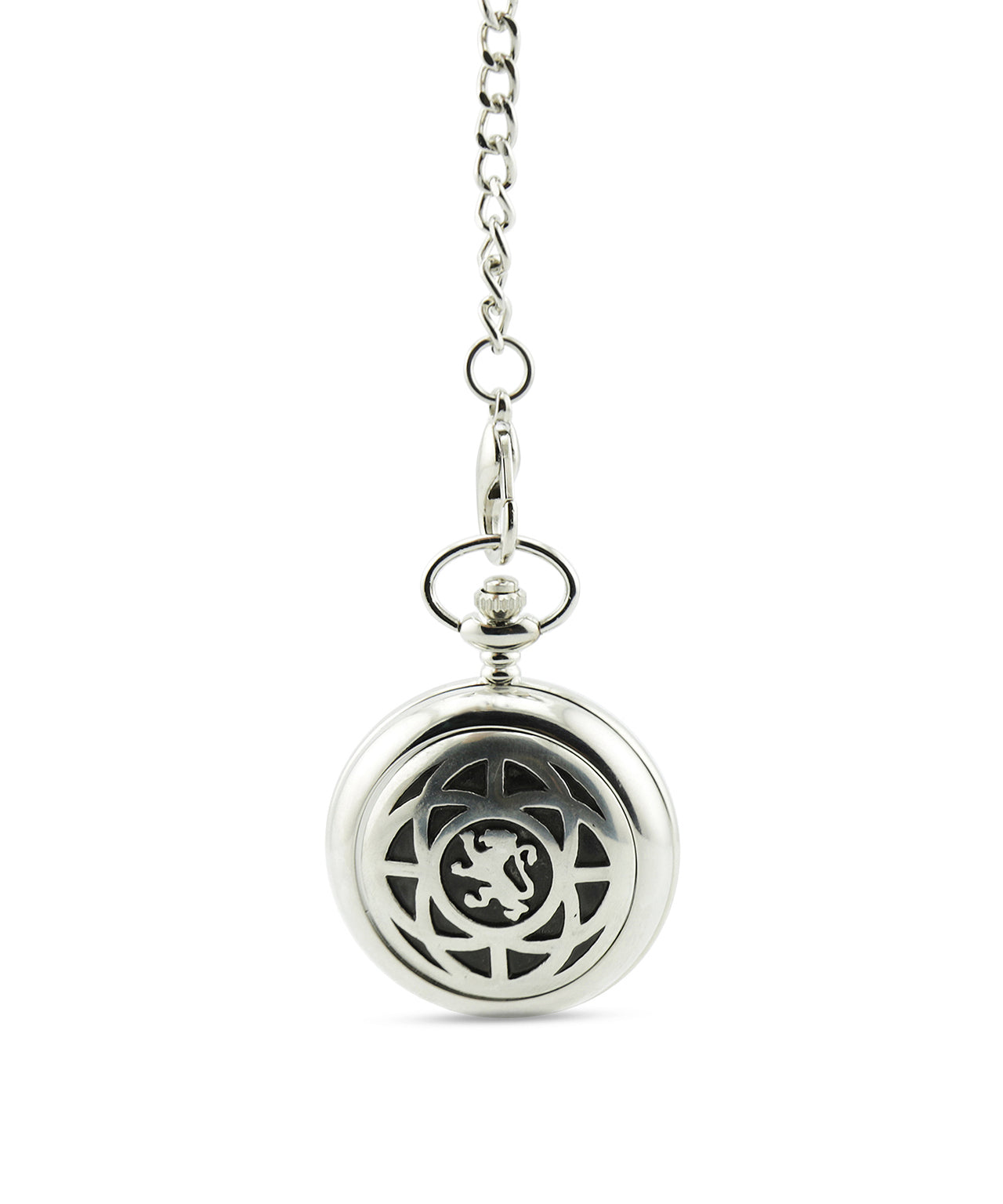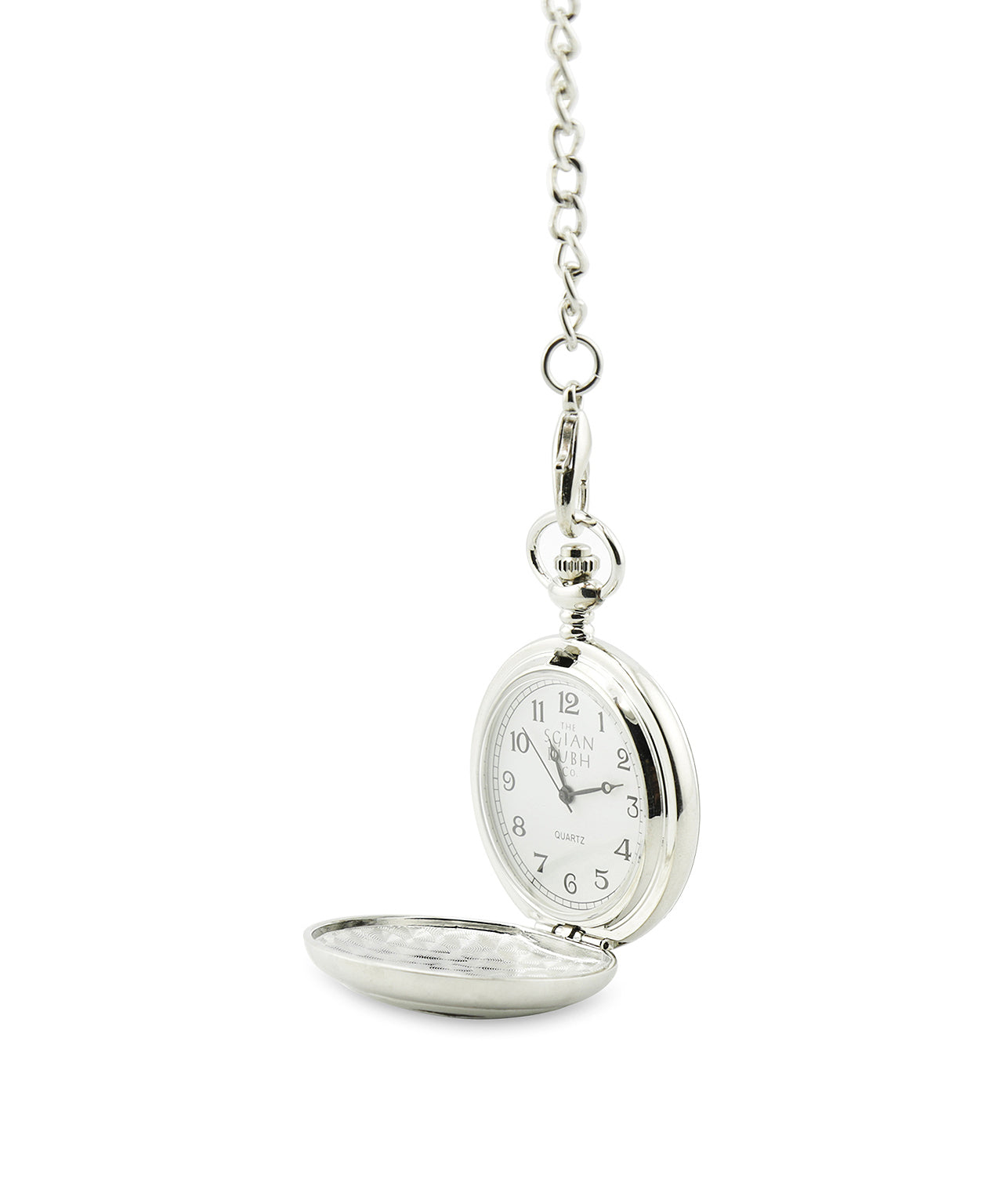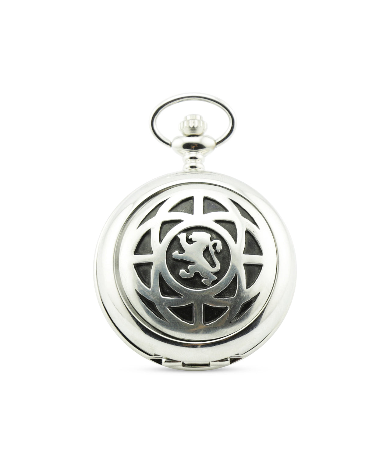 Zakhorloge uit Schotland, klapt open met een druk op de knop. Uiteraard met ketting om aan uw colbert of gilet vast te maken.