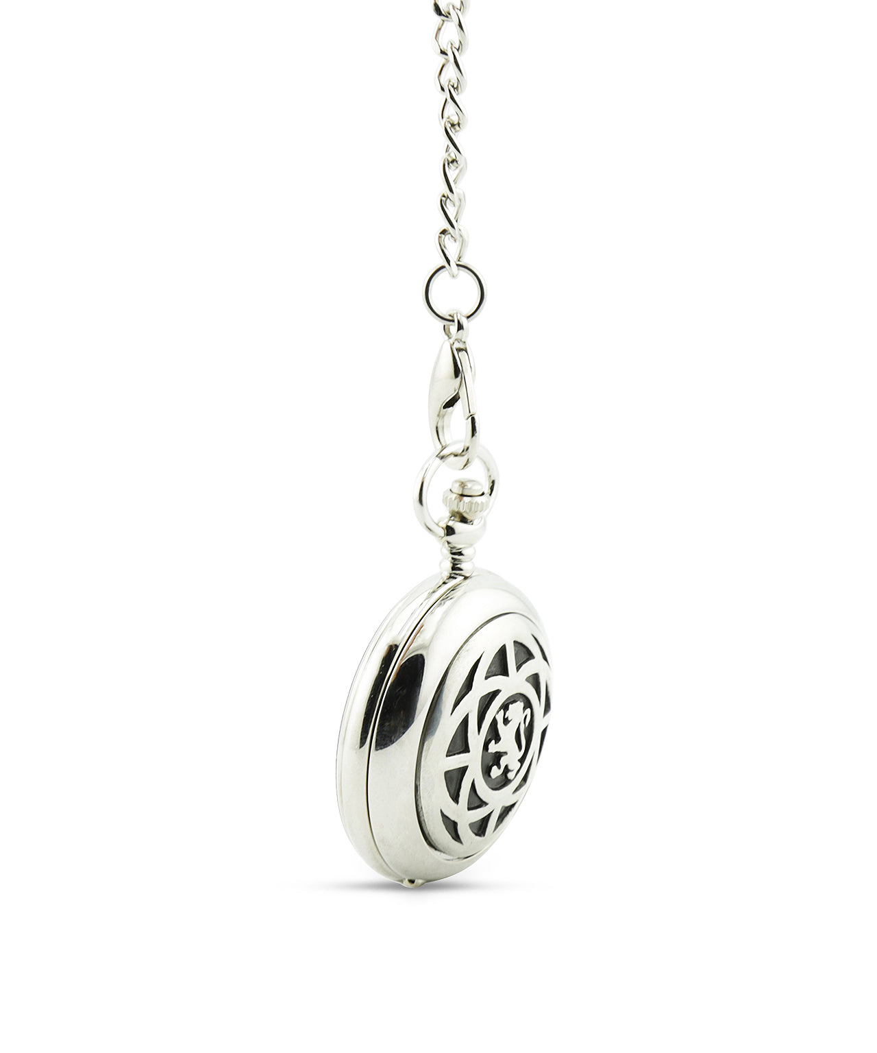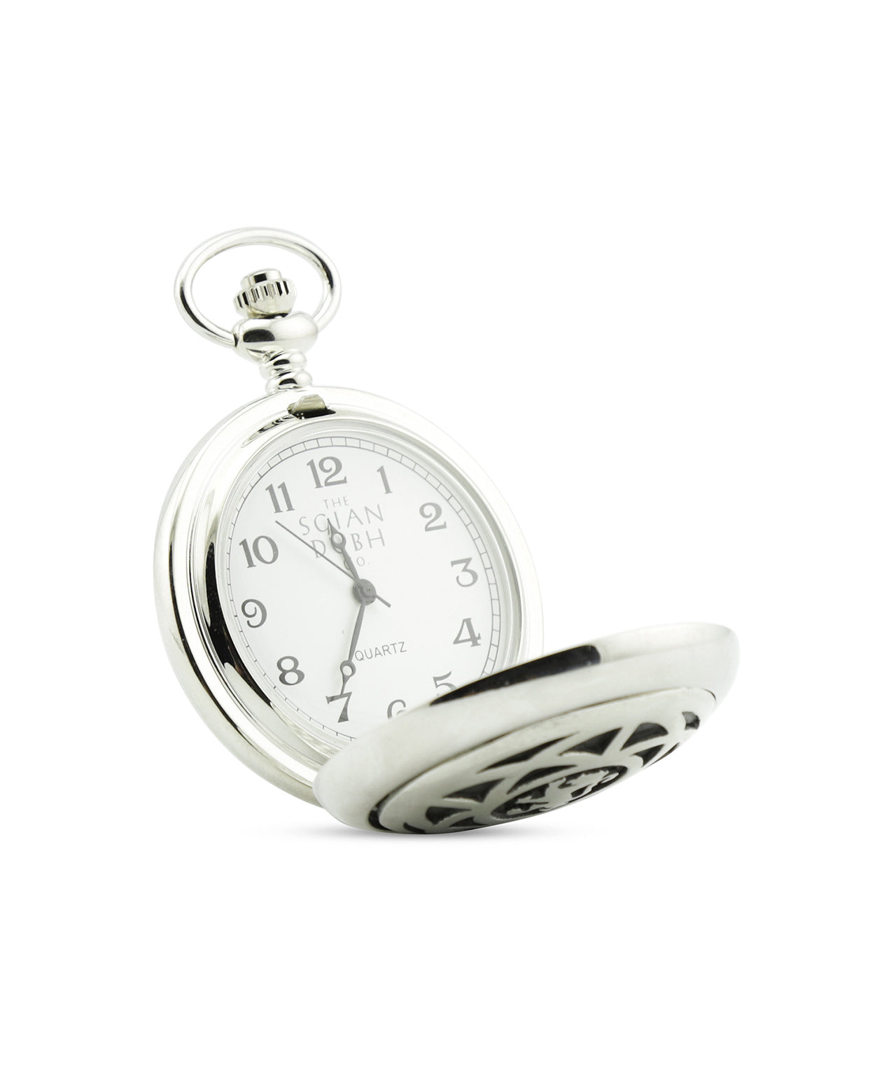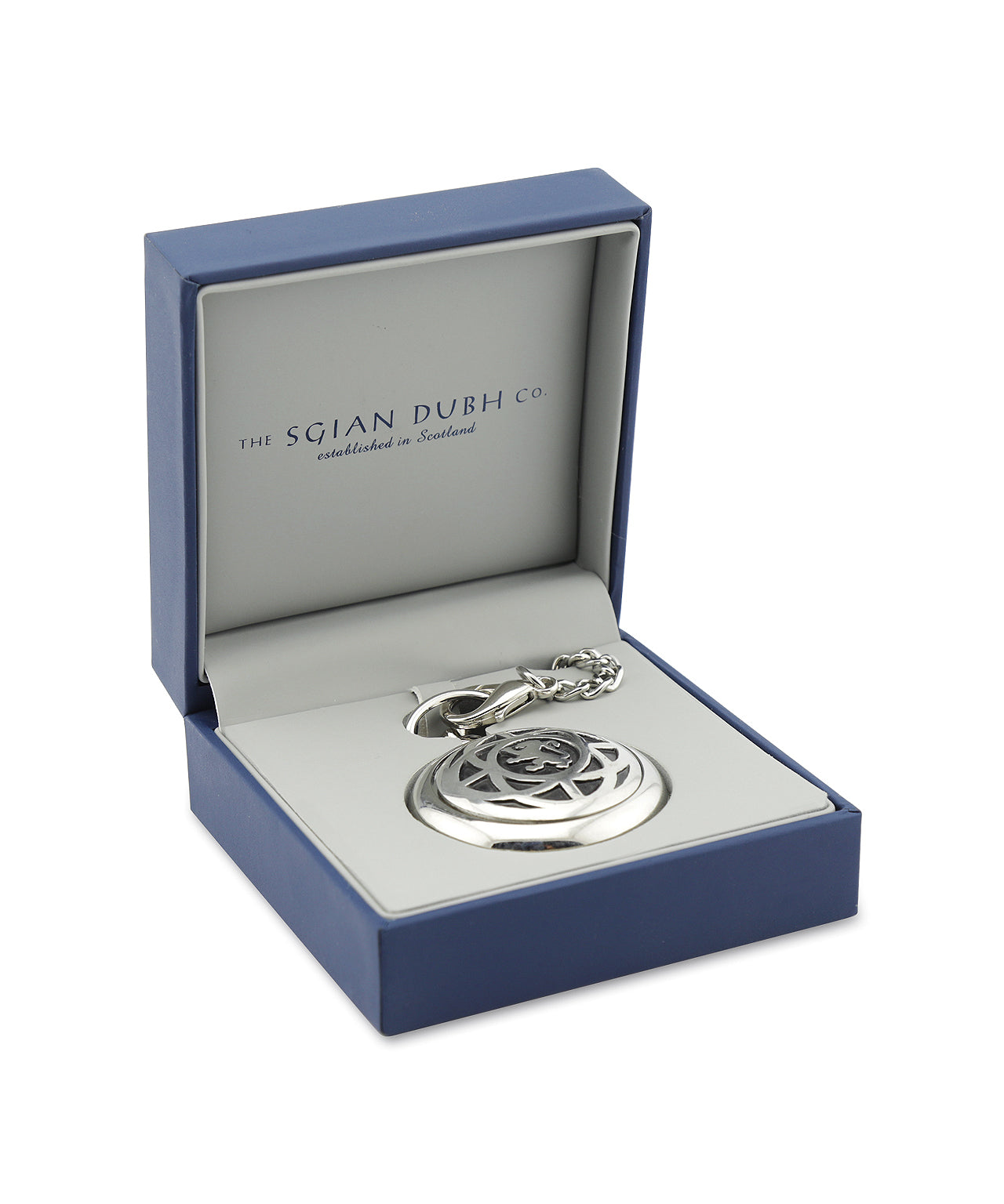 Zakhorloge uit Schotland, klapt open met een druk op de knop. Uiteraard met ketting om aan uw colbert of gilet vast te maken.