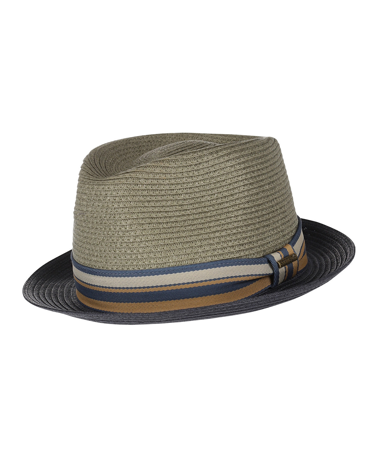 Trilby model van Stetson, gevlochten van het sterke en soepele viscose. Perfect om te dragen op de zomerse dagen.