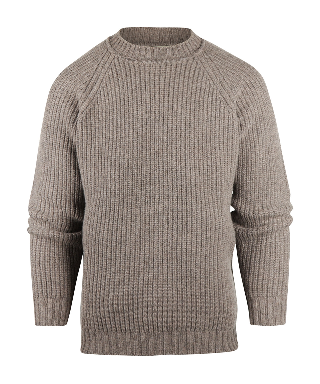 Stoere grof gebreide wollen trui met ronde hals van William Lockie.