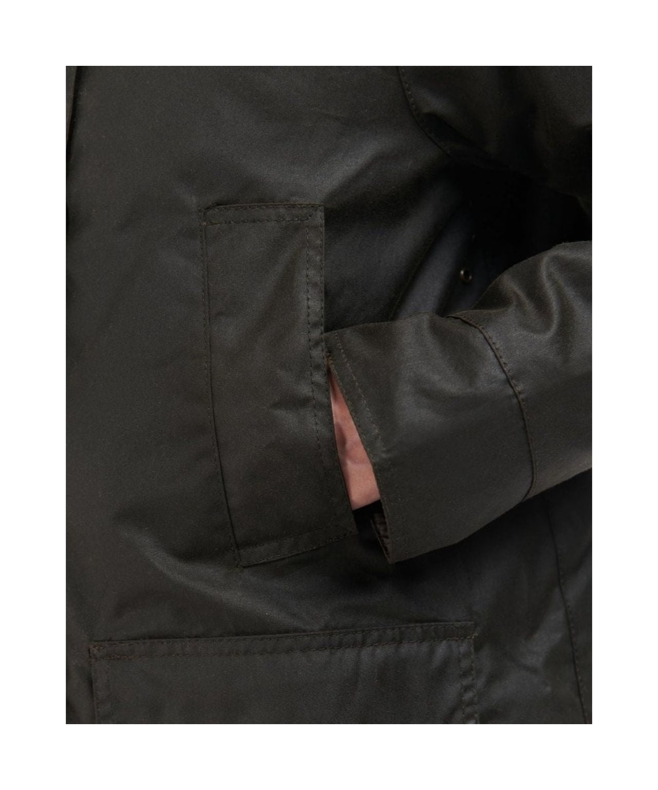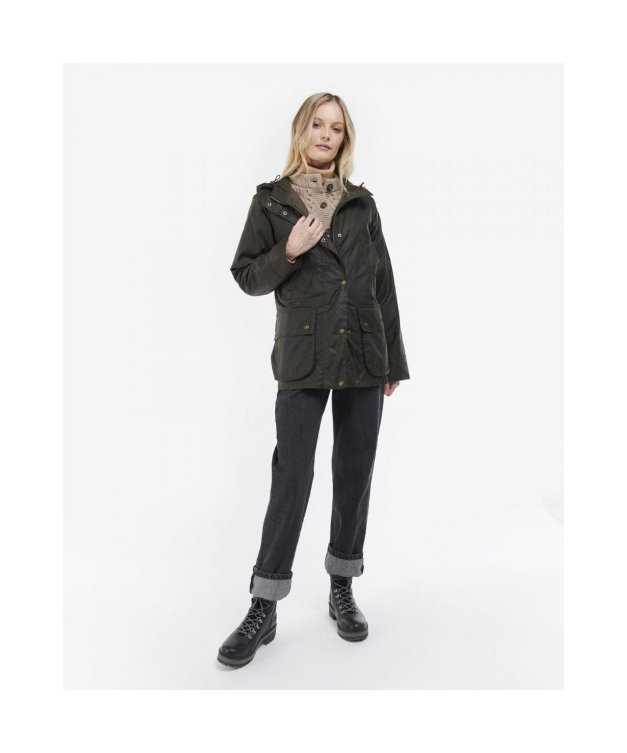 The Barbour Arley Wax Jacket is a cropped design with a fixed hood and lightweight insulation inside. Crafted from waxed cotton, this jacket features handwarmer and bellows pockets and a tartan inner back. A contemporary style with traditional features, this jacket is finished with branding to the left pocket. Regular Fit Exterior: 100% cotton (waxed) Inner back panel/Hood lining: 65% Polyester, 35% Cotton Sleeve Lining/Drip Strip/Inside Front Panels: 100% Polyester 6oz Sylkoil Branding on left pocket Do not wash Clean with sponge only M=38 (12 UK) L=40 (14 UK) XL=42 (16 UK) XXL=44 (18 UK)