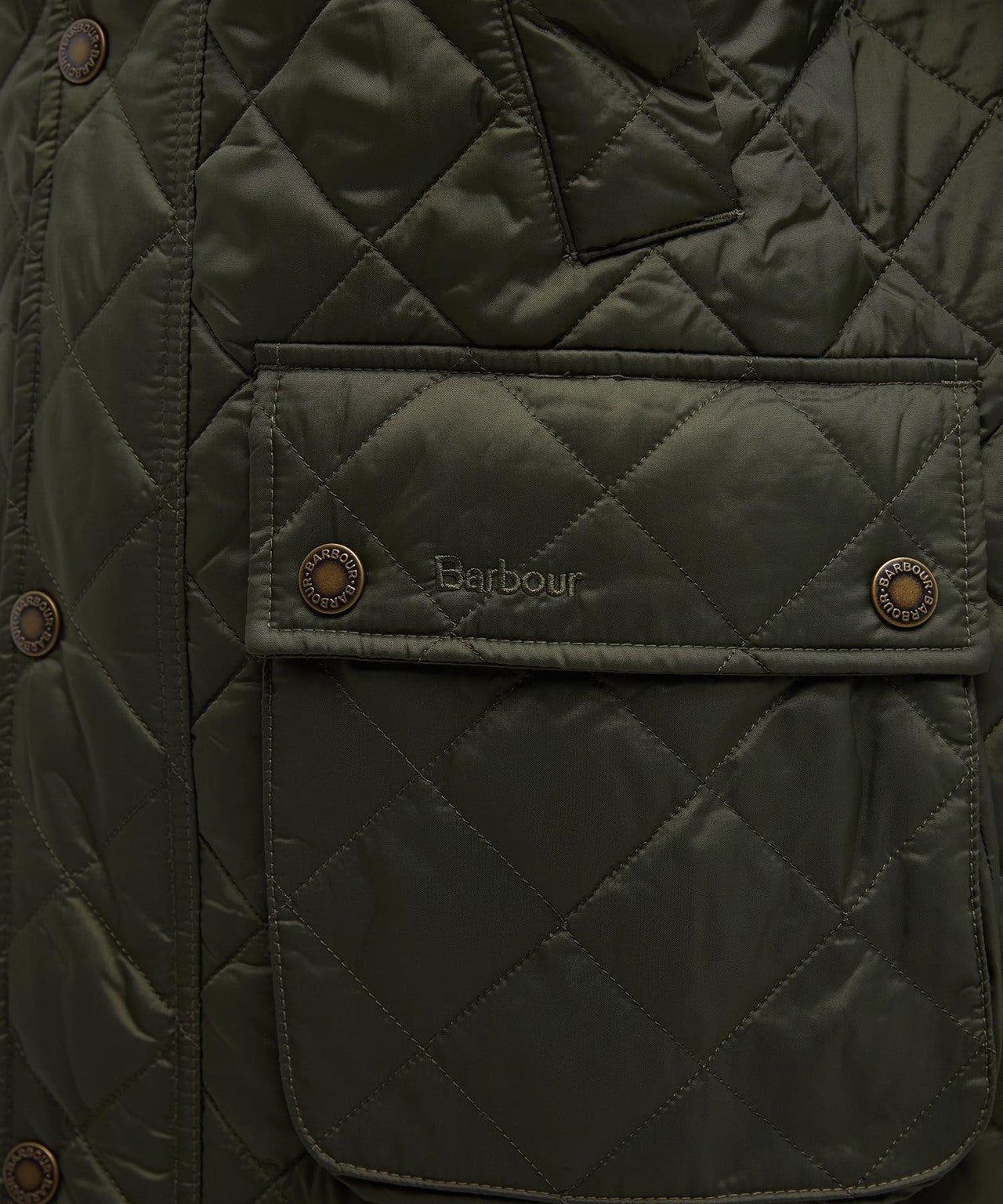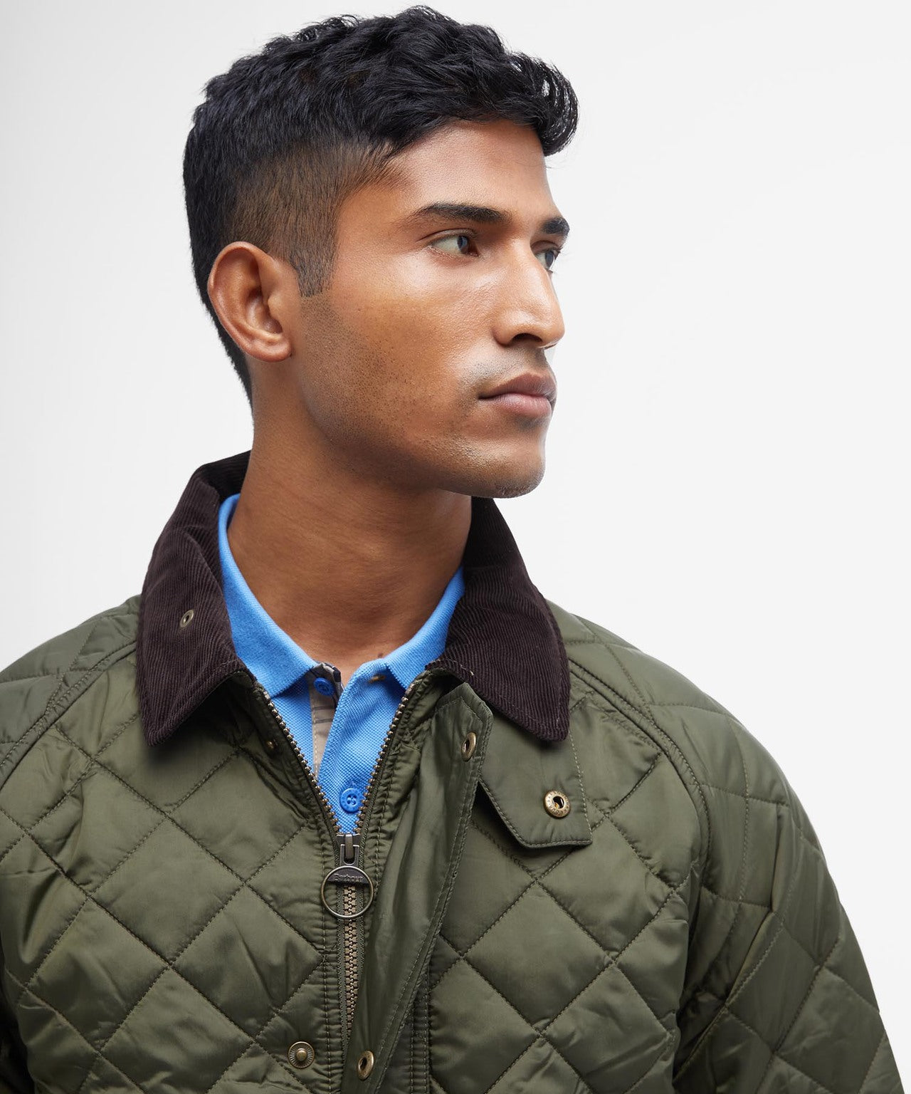 Quilted version of the Ashby wax jacket. This quilted jacket has 4 pockets on the front and a modest inside pocket. The Quilted Ashby has a subtle classic corduroy collar with a storm closure. The fit is regular.