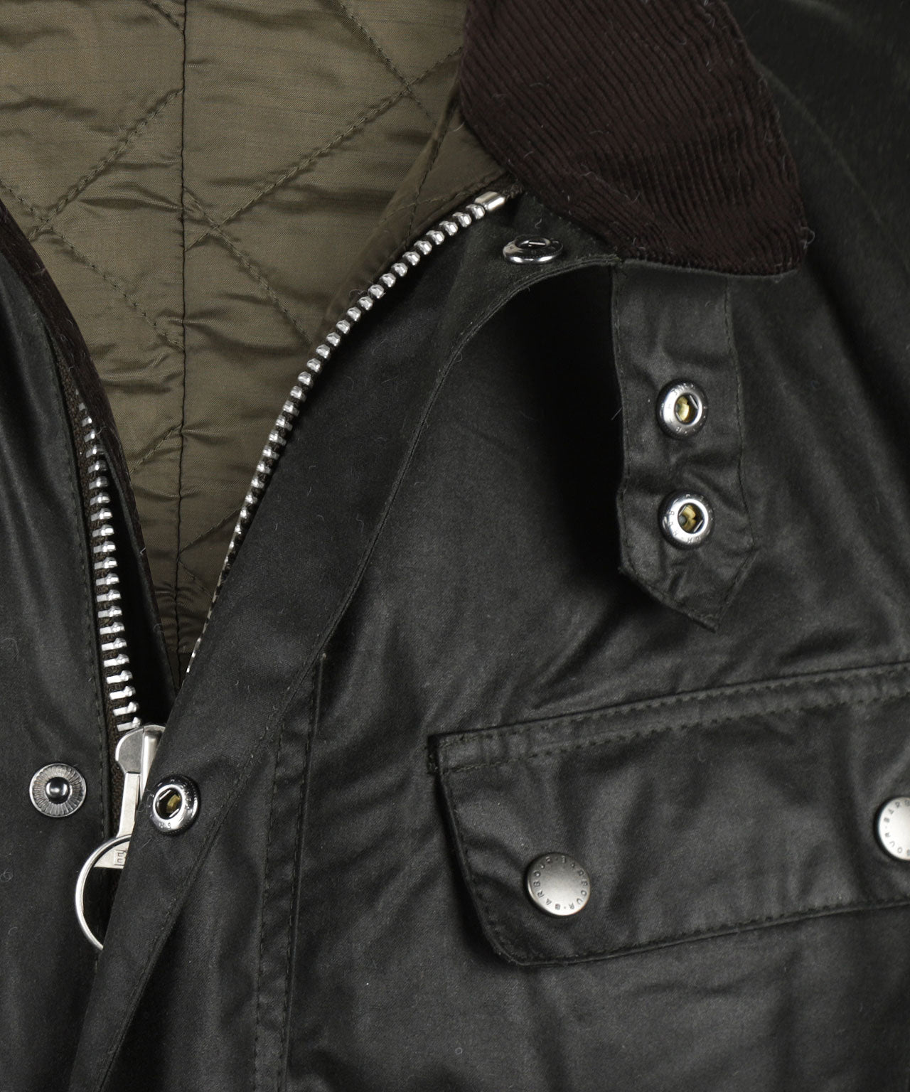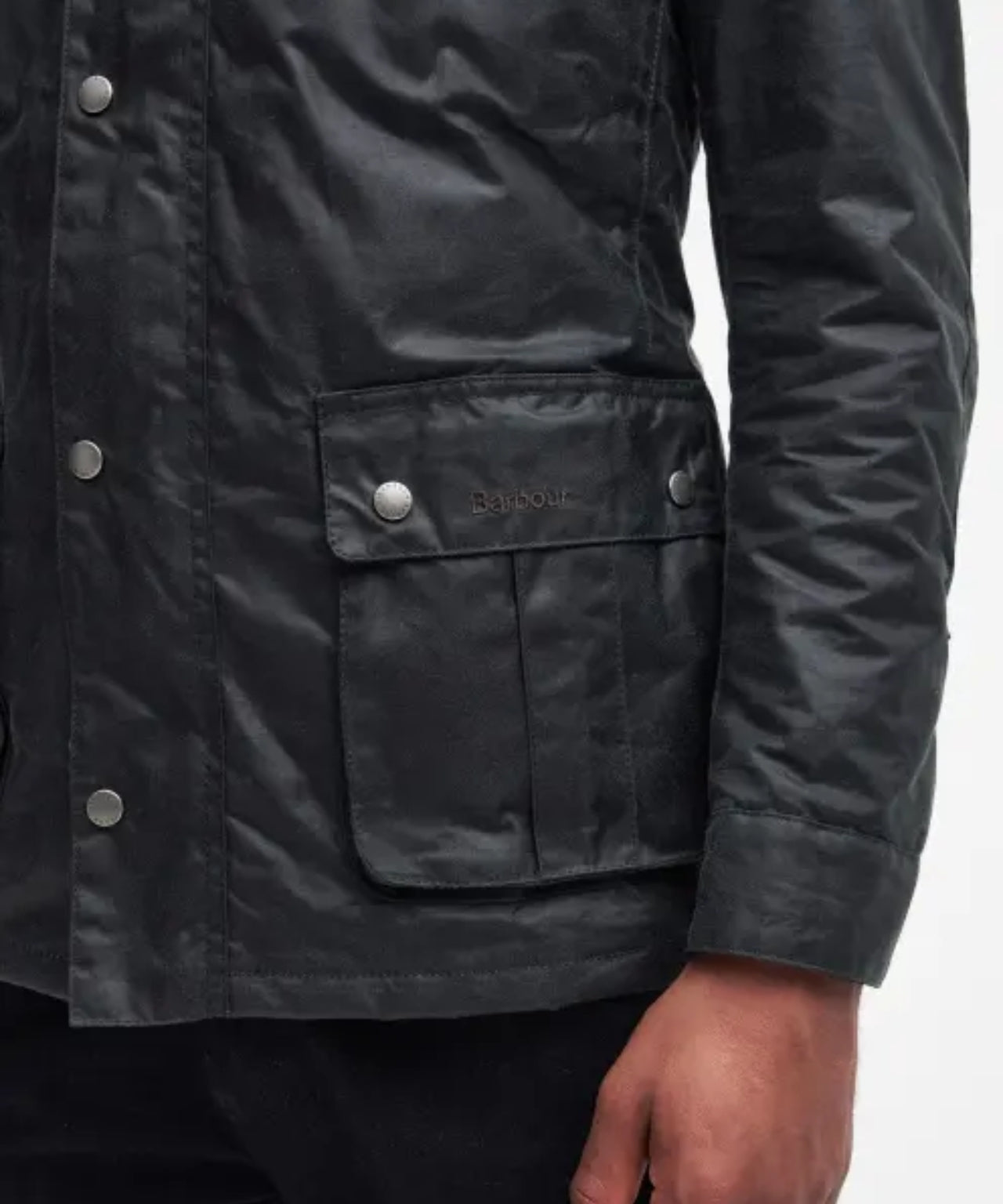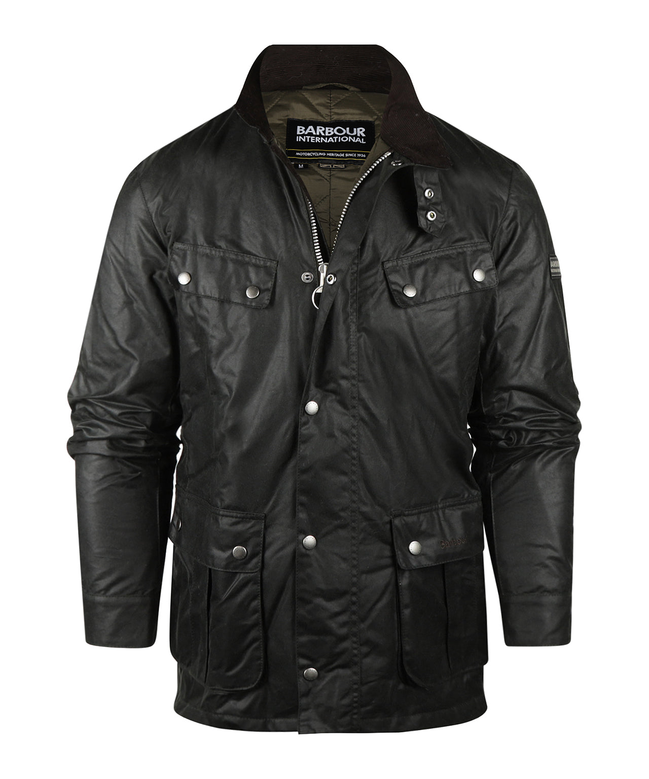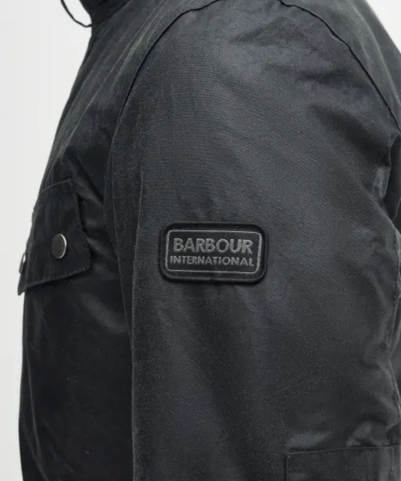 The Barbour International Duke Wax Jacket reinterprets the iconic Enfield style for robust winter insulation. Made from thorn-resistant waxed cotton, it stays true to the biker aesthetic with four outer pockets and elbow patches.