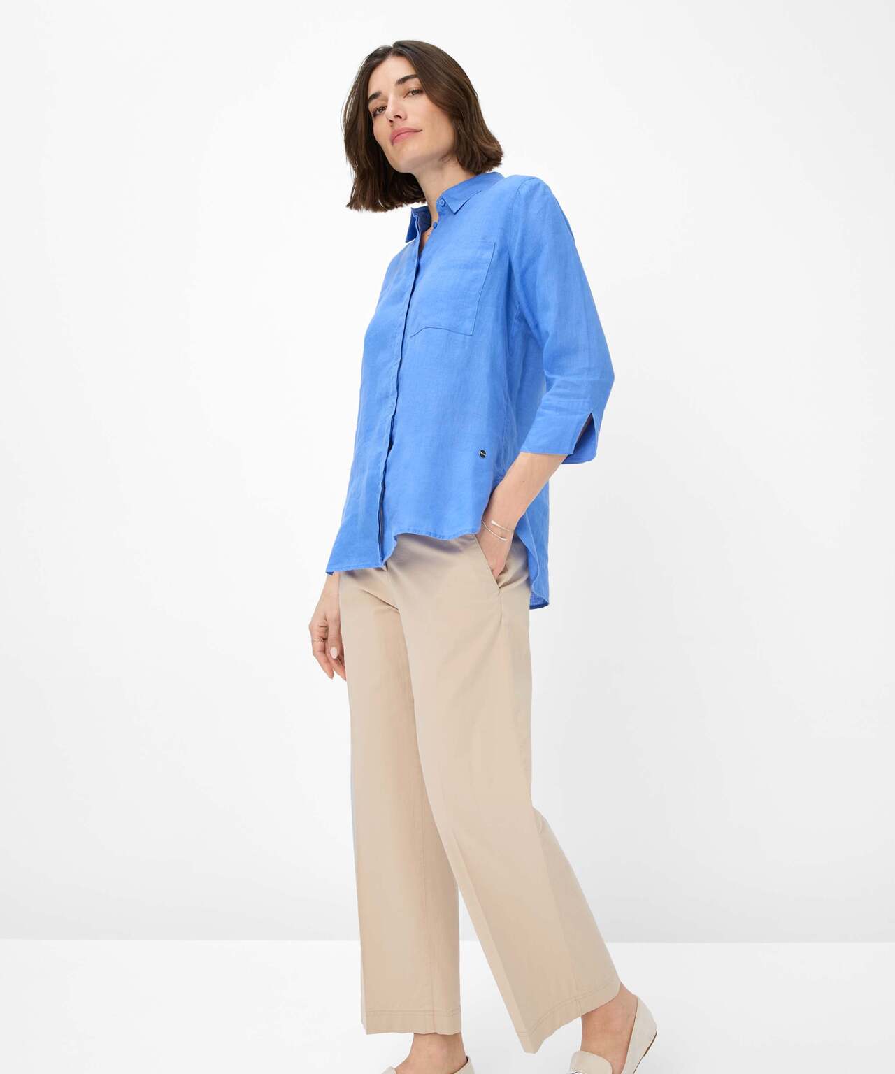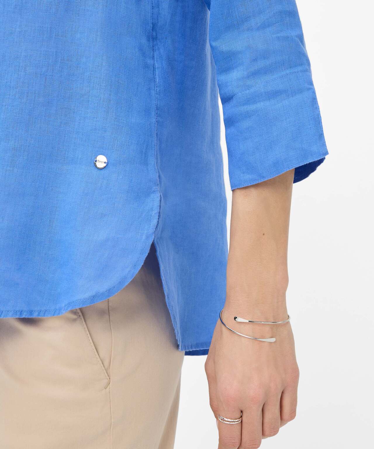 The blouse style VICKI is a classic women's blouse with a slightly flared fit and shirt collar. The 3/4 sleeves and concealed button placket ensure a neat look. The subtle chest pocket, pleats and side slits give the blouse a feminine touch. Made of 100% linen, the blouse offers comfort and an elegant texture for warm days.