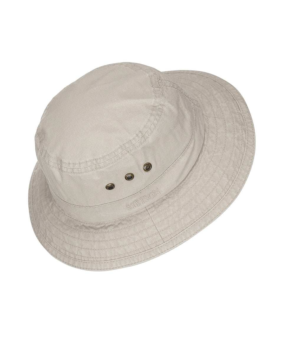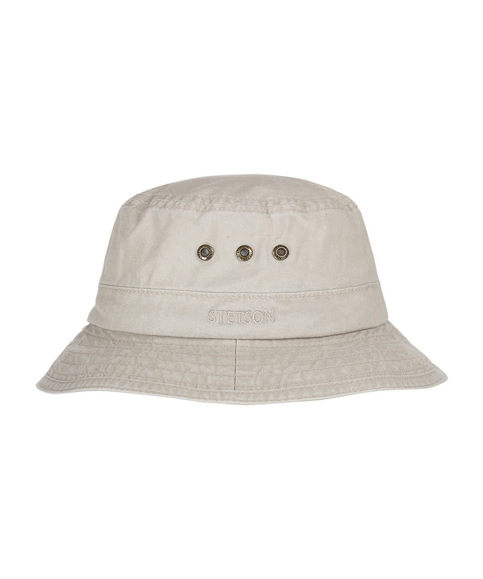Bucket hat by Stetson made of organic cotton. The Delave Bucket Hat is equipped with the Stetson Sun Guard which offers a UPF 40+ protection.